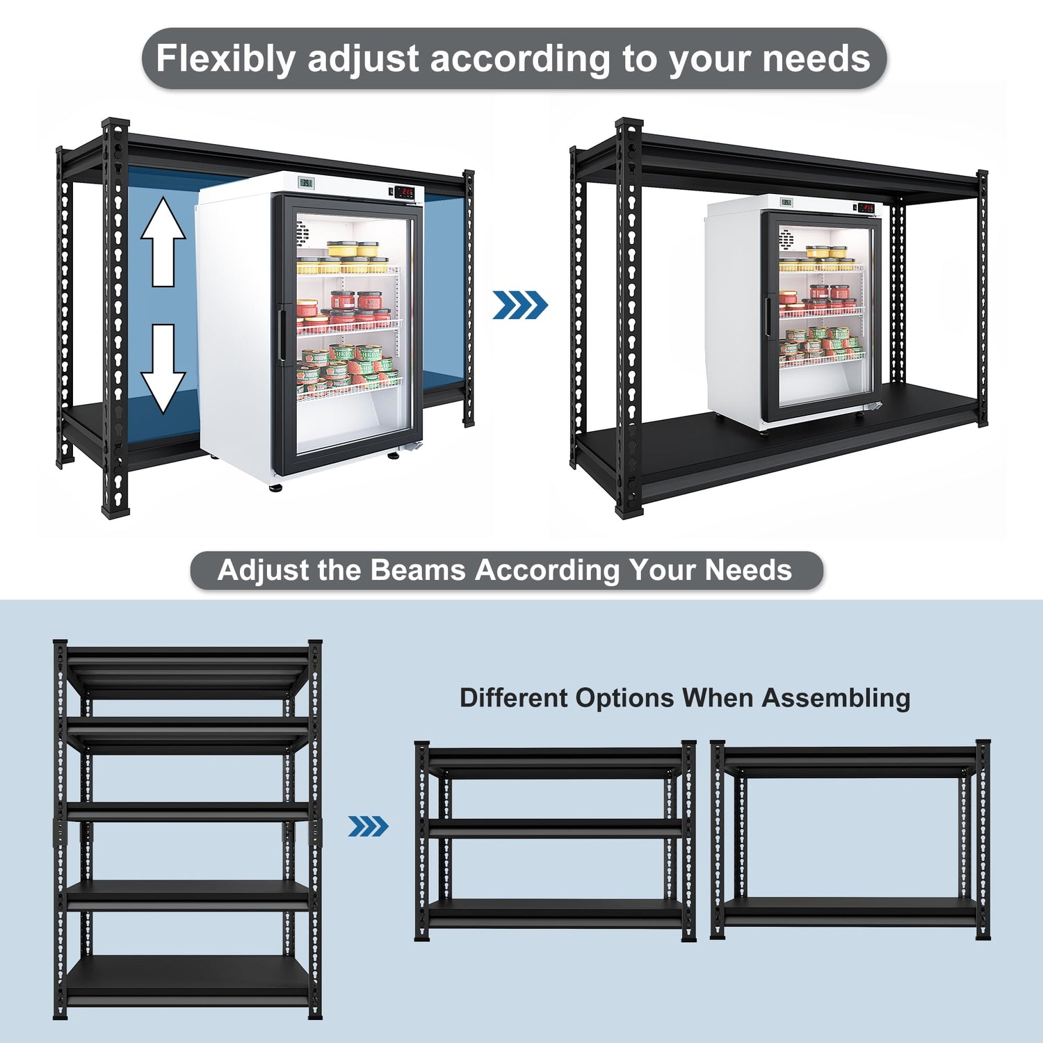- 【Gerat Storage Capacity】Instead of flimsy wires and wooden board,our garage shelving is made of all metal shelves,thickened beams and walled uprights. What we present to you is an enhanced structures complete the unit with 2250 lbs bearing capacity.