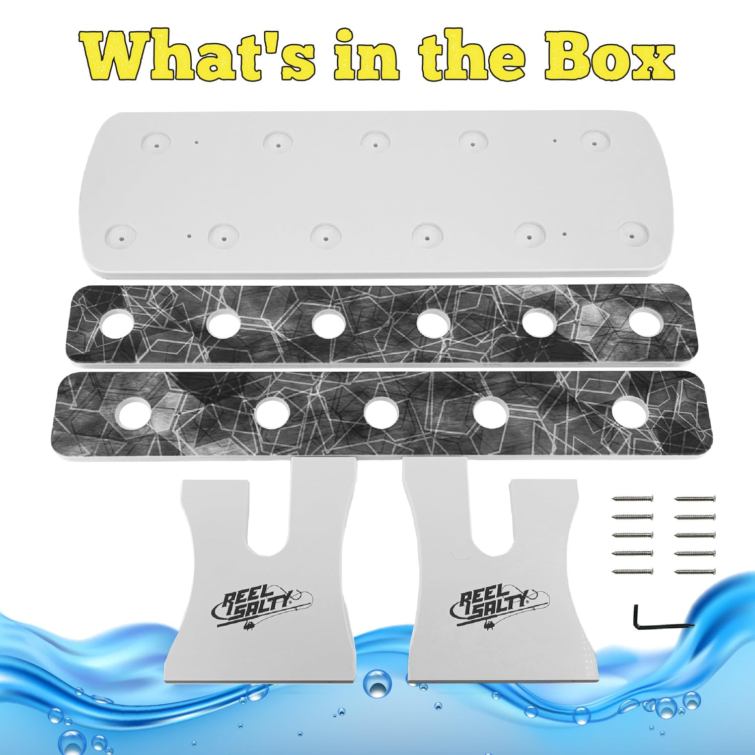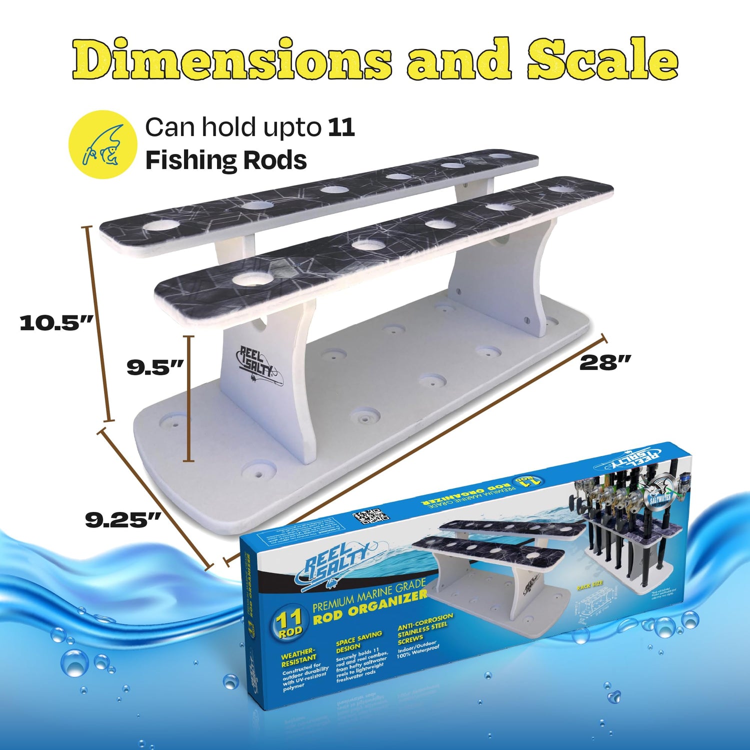 Rush Creek Creations Reel Salty Premium Marine Grade 11-Rod Fishing Rod Holder with Bi-Level Design, UV-Resistant, 100% Waterproof Fishing Pole Holder for Garage and Dock, Securely Holds 11 Rods