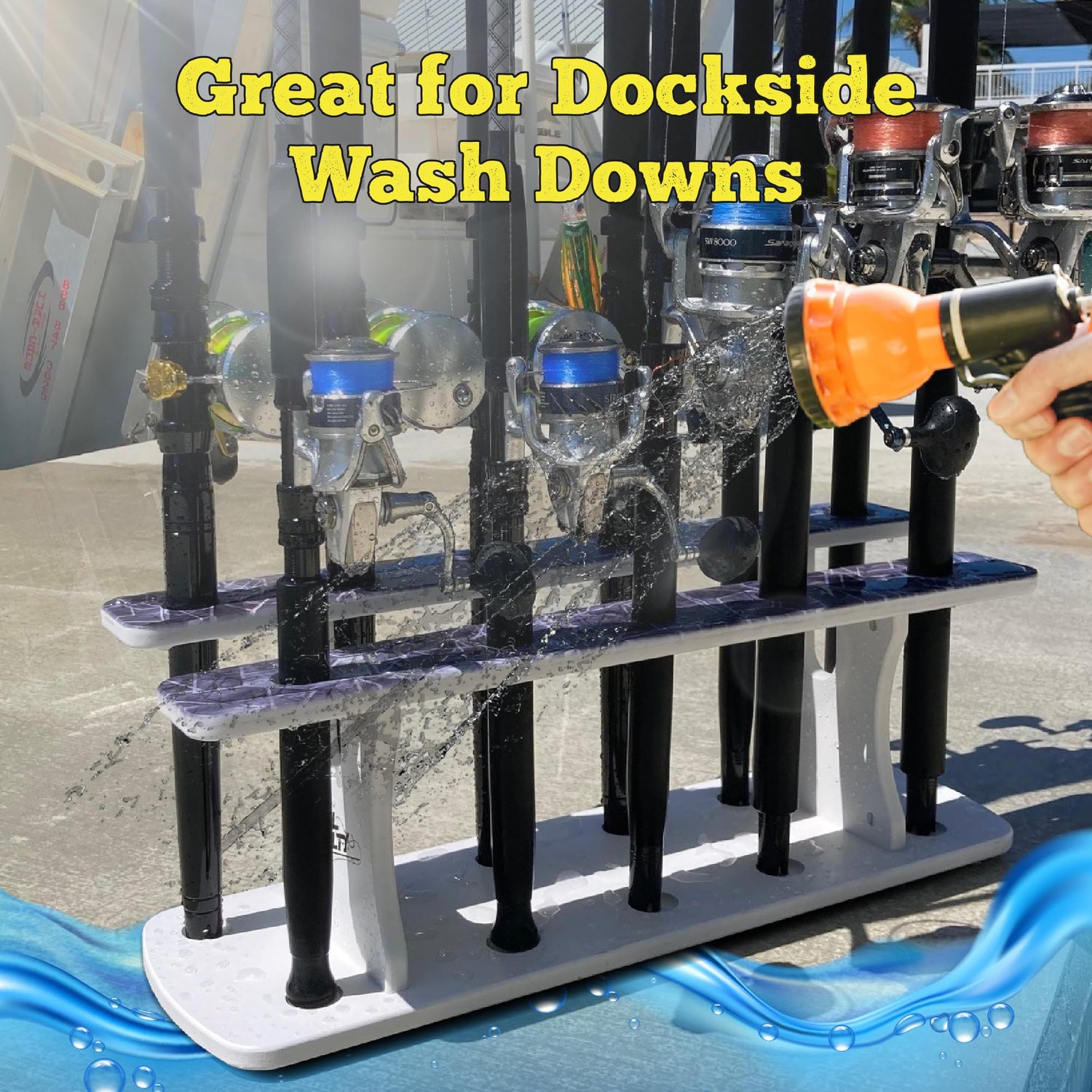 - WATERPROOF CONSTRUCTION: Built with high-quality, weather-resistant materials that withstand wet conditions, you can rinse off your rods directly in the holder for effortless maintenance after a day of fish; holder is also easy to assemble