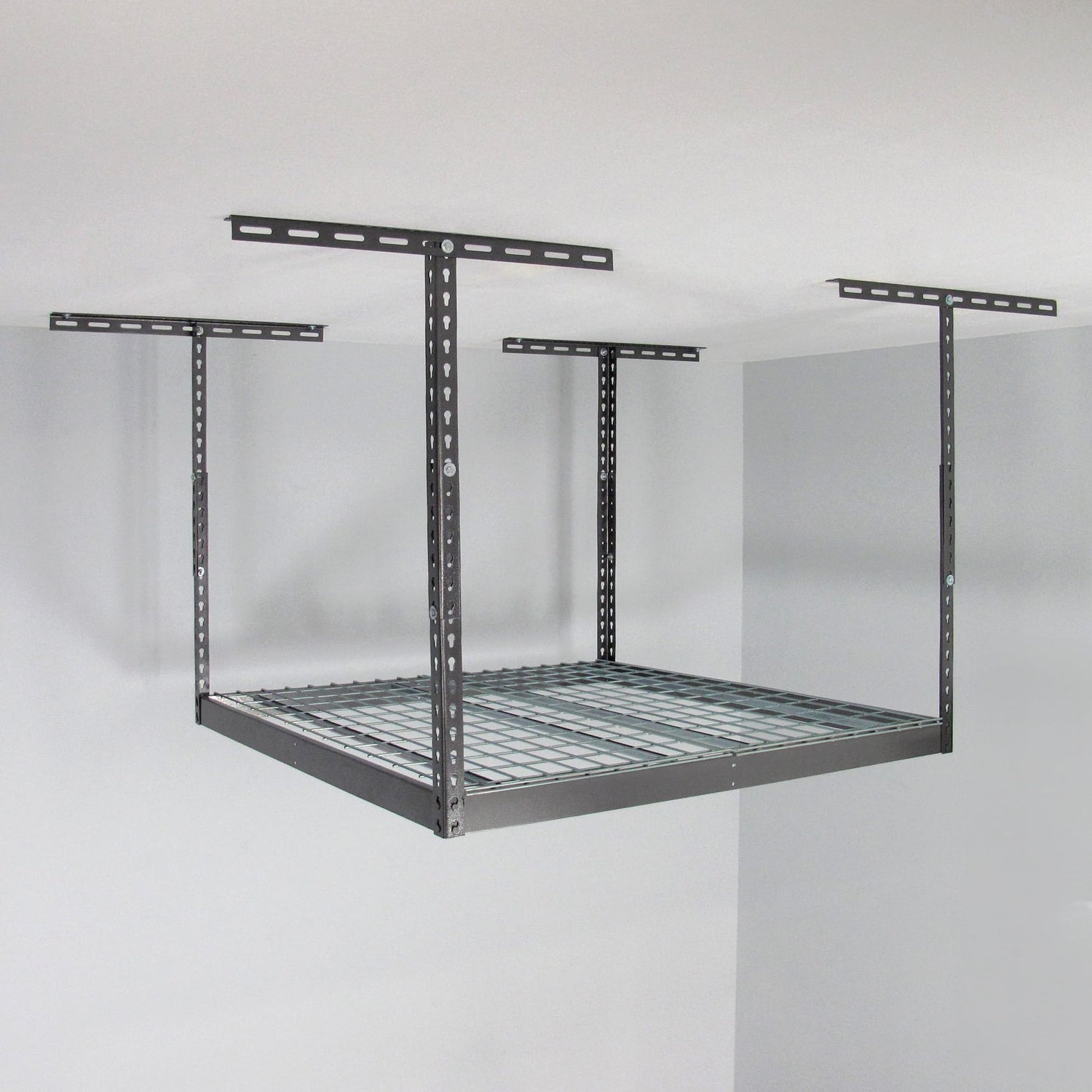 SafeRacks 4x4 Overhead Garage Storage Rack - Heavy Duty Storage Racks, Easy Garage Shelving, Ceiling Mounted Storage Shelves, Grey, 250 lb Capacity, 24"-45" Adjustable Height