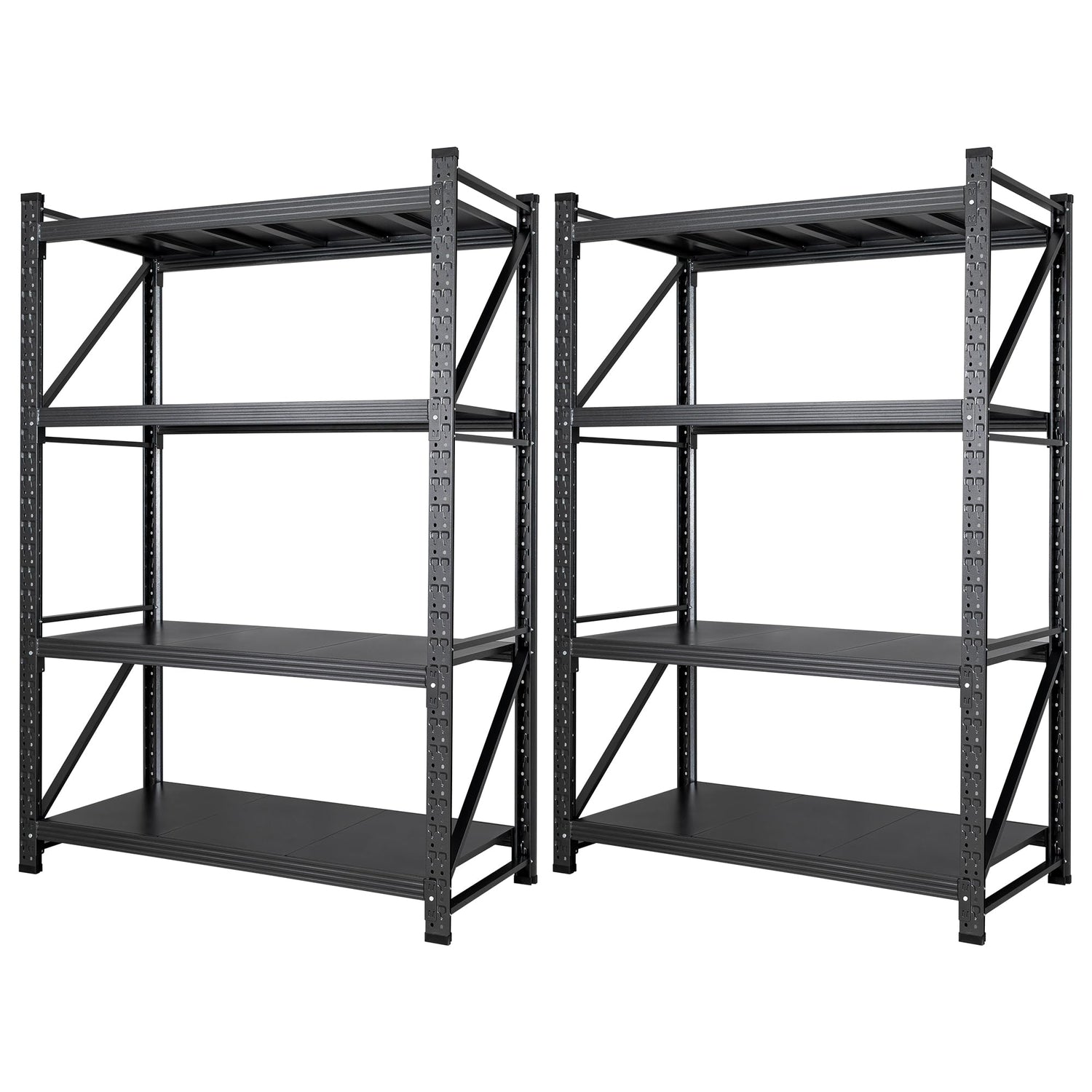 Set of 2 Storage Shelves, 4 Tier Heavy Duty Garage Shelving Units, 48” Wide Rack Shelf, 3000LBS Steel Industrial Shelving, 24” Deep Adjustable Standing Shelf for Warehouse 24" D x 48" W x 70" H Black