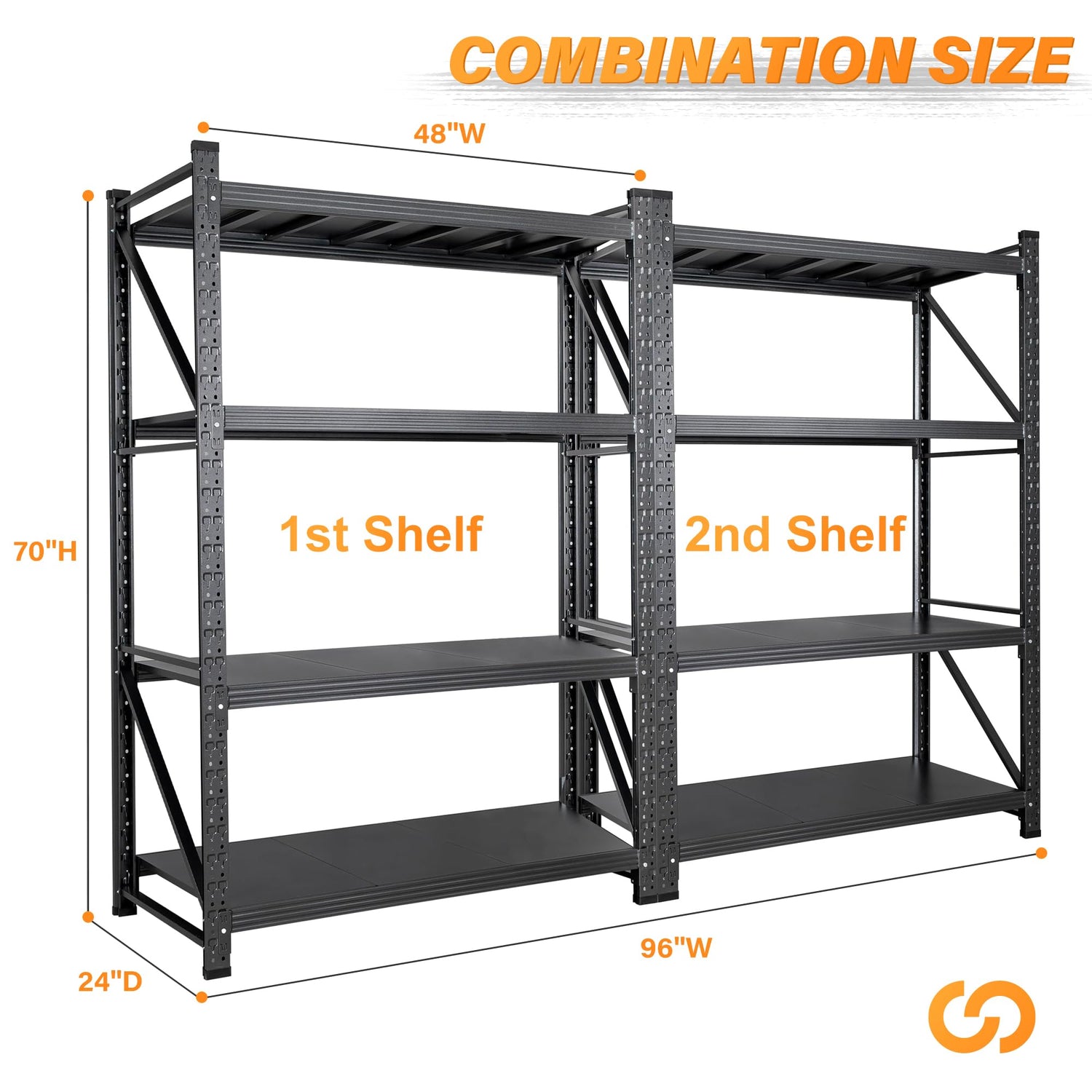 - 【SUPER WIDE & FUNCTIONALITY & AESTHETICS】➤ The dimensions of this extra-wide utility shelf are 48"W x 69"H x 24"D, suitable for a variety of environments including garages, basements, warehouses, shops, pantries, kitchens and super market, particularly for storing large items of varying sizes. The black garage shelf not only increases storage capacity but also promotes an organized and visually appealing environment. Additionally, the open design allows for easy and quick identification and retrieval of items.