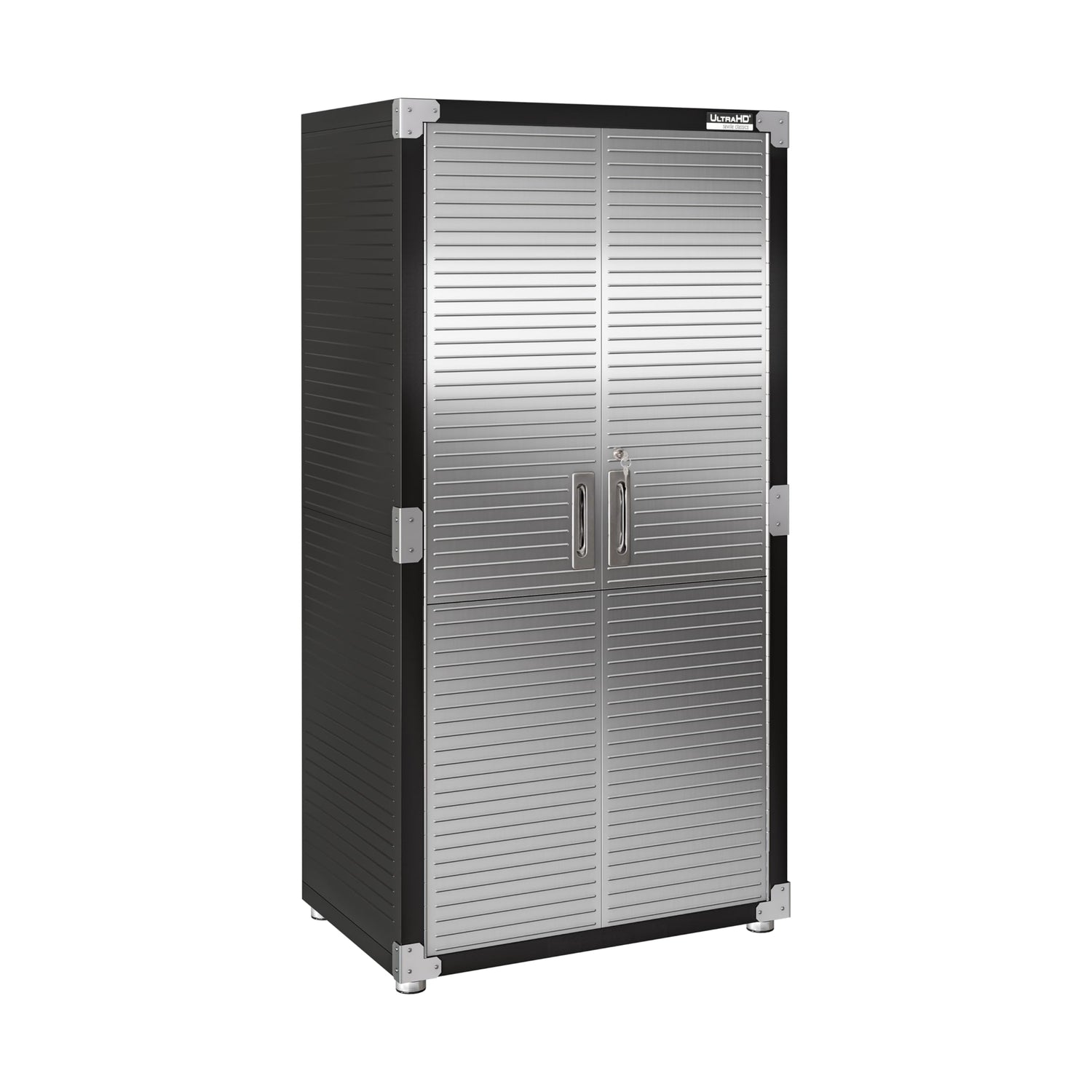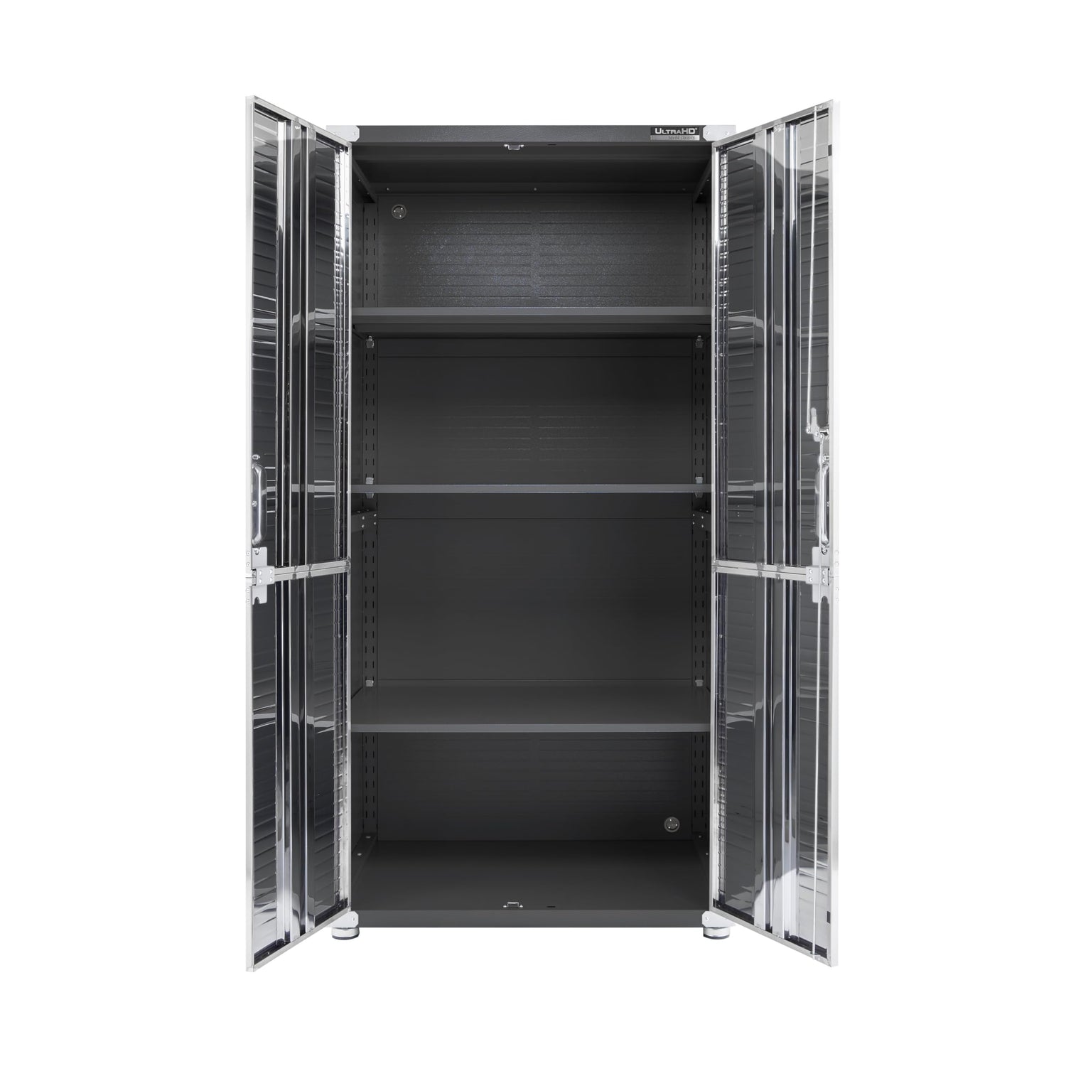 Details: Store your supplies and equipment in the Seville Classics® UltraHD® 2-Door Lockable Storage Cabinet! Our cabinets are engineered for heavy-duty use with commercial-grade steel finished in a durable granite gray finish. Secure your things behind key lock stainless-steel doors with magnetic latches. Door fronts are ribbed for defense against dents and divots while giving the doors additional rigidity. They're finished with our UltraGuard® fingerprint-resistant coating for defense against grease and smudges. Organize the interior of the cabinet with three height-adjustable steel shelves. Each adjustable shelf holds up to 150 lbs. with the weight evenly distributed. The bottom shelf holds up to 350 lbs, for a total weight capacity of 800 lbs on leveling feet. The cabinet corner protectors are made of heavy-duty steel for additional safety in active work environments. The cabinet is 36 inches wide, 24 inches deep, and 72 inches high for convenient multipurpose use in homes and businesses. Pair with other UltraHD® storage cabinets and workbenches for a total organization solution. Assembly is easy taking only a few minutes with two people. All required tools are included with detailed instructions.