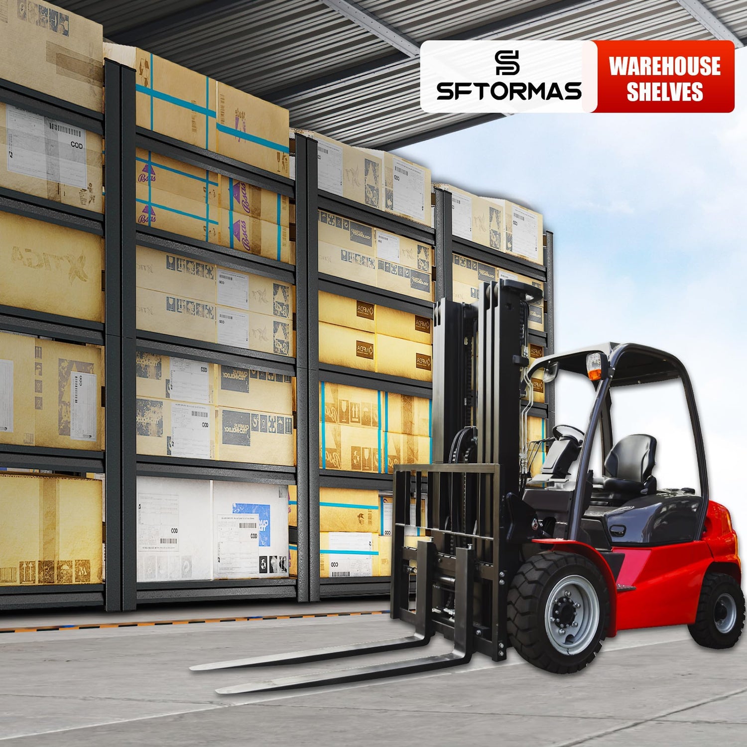 - 【 All-Steel Shelves with Reinforced Bottom Bracing】SFTORMAS only use the best quality cold rolled steel,upgraded double-thickness columns and bulkhead reinforcement is like wearing an indestructible “armor” for the storage shelves,compared with ordinary single-layer column storage shelves load-bearing greatly enhanced.even when carrying heavy loads for a long time,there is no need to worry about shelf shaking and partition bending and other situations.the columns are covered with top/bottom caps to protect the floor from scratches.