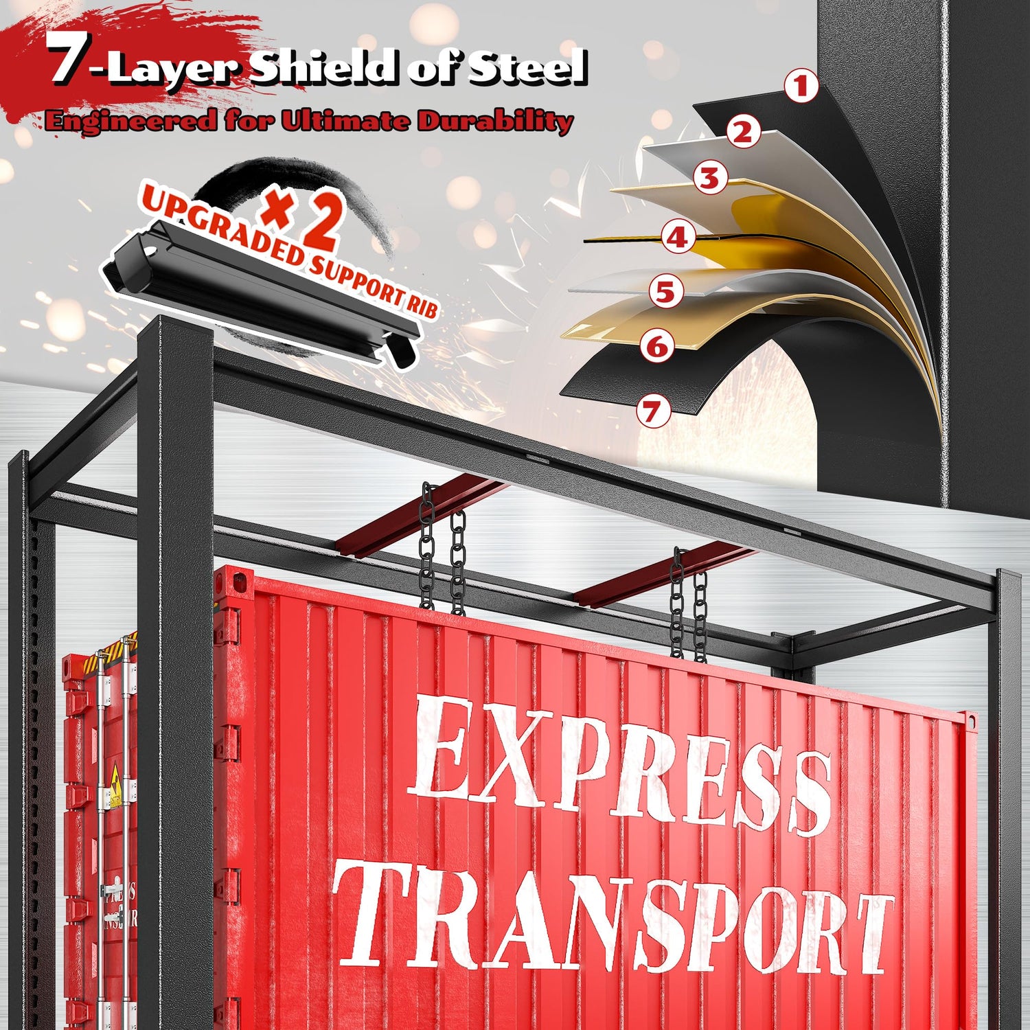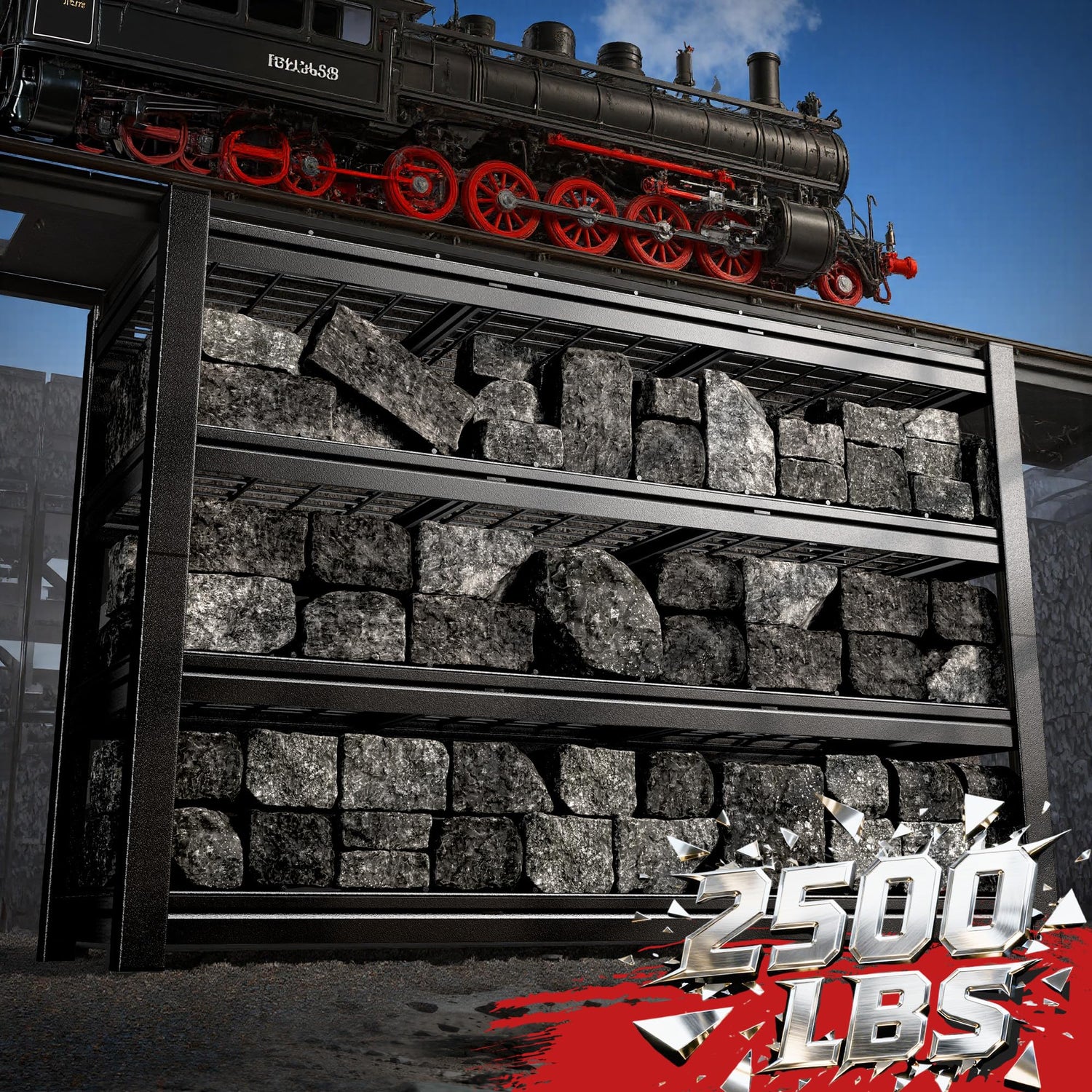 • 【Double Layer Upright Design and Heavy Duty Reinforced Metal Construction‌】This garage shelving features a double-layer upright design, that are wider and thicker than ordinary shelves. Each tier includes added support rods, delivering a 625 lbs per shelf capacity and a total load capacity of 2500 lbs. This industrial-grade build ensures maximum stability and safety for heaviest tools and equipment, providing complete peace of mind