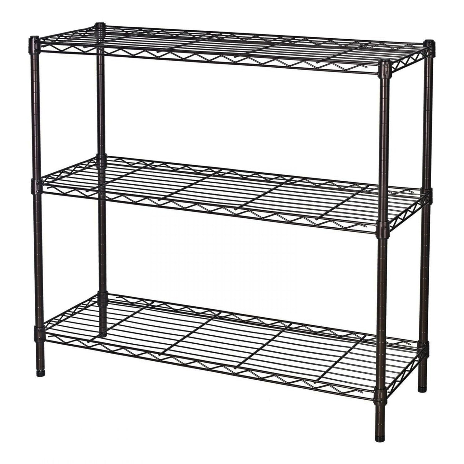 Standing Shelving Units, 36" W x 14" D x 32" H Metal Storage Shelves, Adjustable Carbon Steel Wire Shelving Rack Display Shelf for Garage Bathroom Kitchen Home Office (3-Tiers, Black)