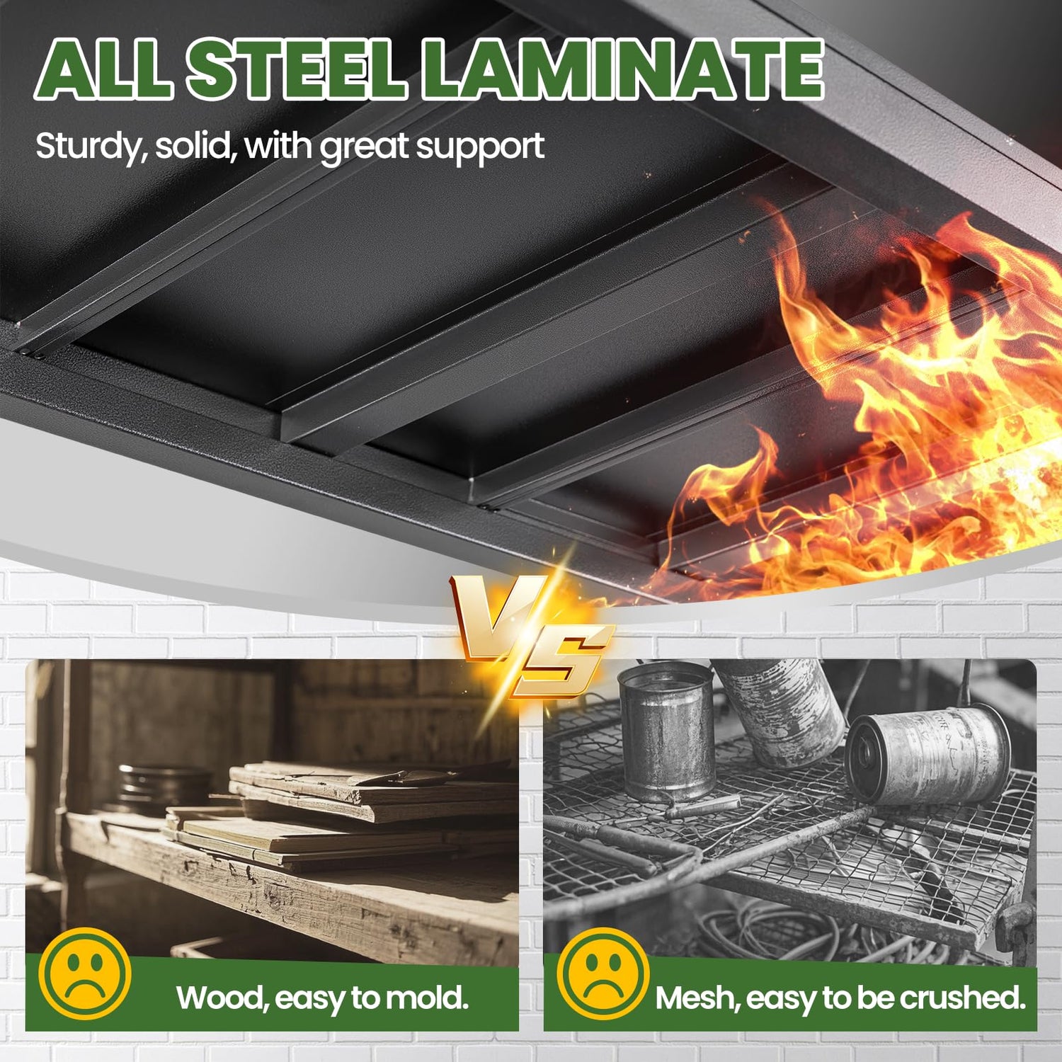 - ⭐【All-Steel Shelves & Reinforced Beams】 STANI heavy duty shelf is made of all steel, the reinforced beams and steel plates can handle heavier loads and store a variety of heavy items. In addition, additional reinforcement support is provided under each steel plate to ensure the safety of the items and the integrity of the shelf. The surface of this heavy duty shelf is coated and not easy to rust, which is very suitable for humid environments, such as garages and basements.