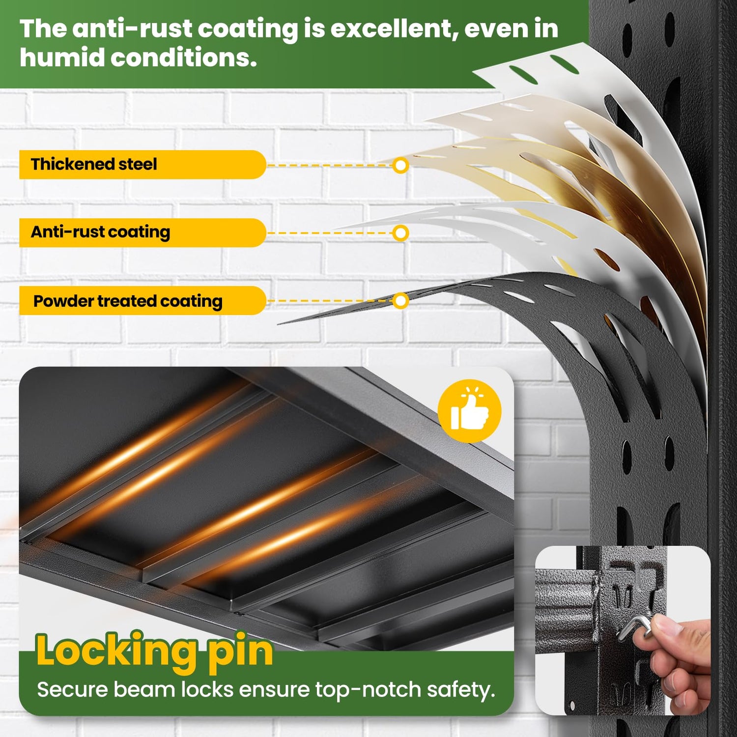 - ⭐【Anti-Falling Safety Rails】 Two anti-falling safety rails are specially designed on both sides of the shelf, which can effectively prevent items from sliding off the shelf, ensuring the safety of your items, especially in garages and workshops, This heavy duty shelving is effectively to prevent heavy boxes and heavy objects from falling, offering enhanced security for your belongings and workspace.