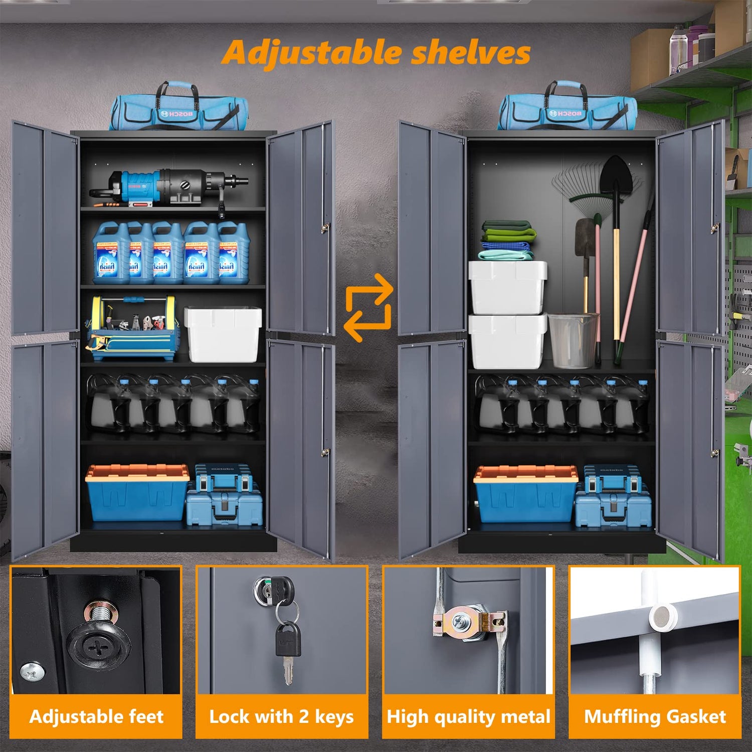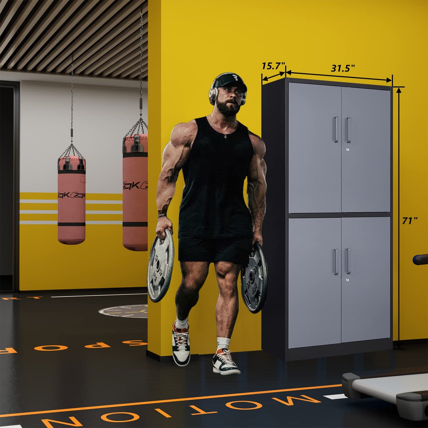 STANI Metal Storage Cabinet, Locking Steel Storage Cabinet with 4 Doors and 2 Adjustable Shelves, 71" Steel Lockable File Cabinet, Tall Steel Cabinet for Home Office,Garage,School
