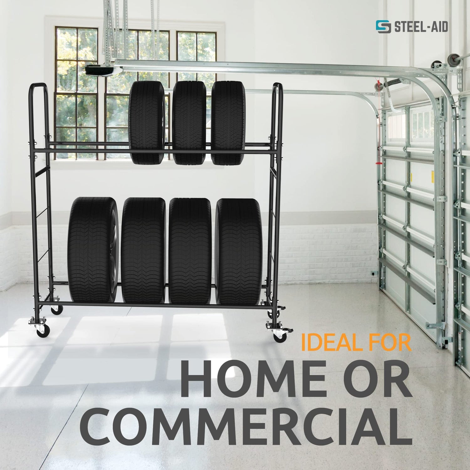 STEELAID Tire Storage Rack - Rolling Rack for Garage - Indoor/Outdoor Shelves 60 inch Organizer