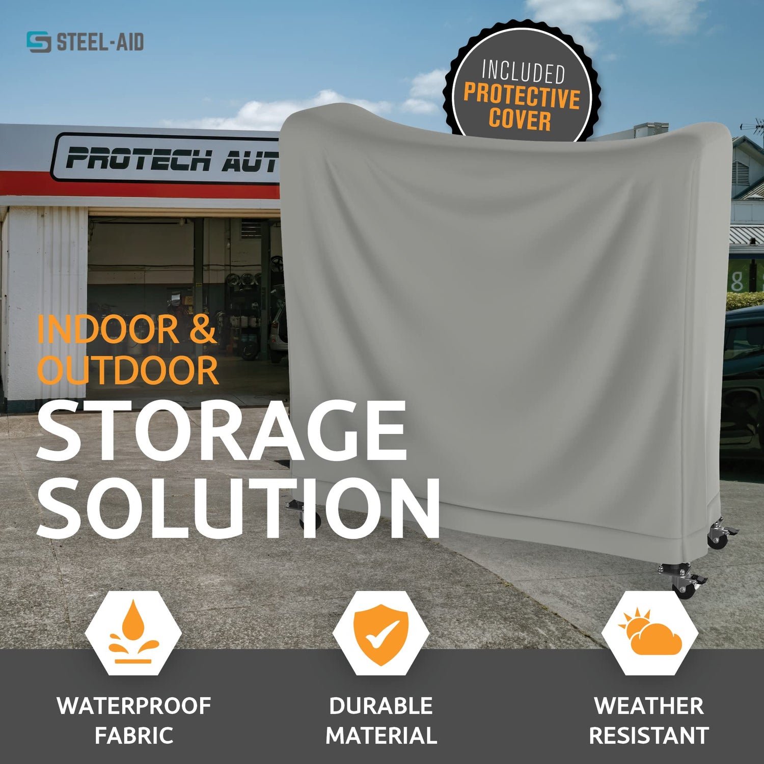 • πˆππƒπŽπŽπ‘ / πŽπ”π“πƒπŽπŽπ‘ π’π“πŽπ‘π€π†π„ - Includes a protective cover to shield the rack from rain, snow, dust, and spiderwebs. Suitable for indoor and outdoor storage with no worry of damage or rust. Great for home garages, auto shops, and car dealerships.
