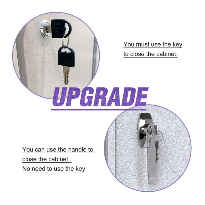 - 【Lock Corner Protector】Lockable metal storage cabinet has 1 lock with 2 keys,which can ensures safety and convenience. 4 bottom corner protectors can protect the steel storage cabinet from hitting damage.