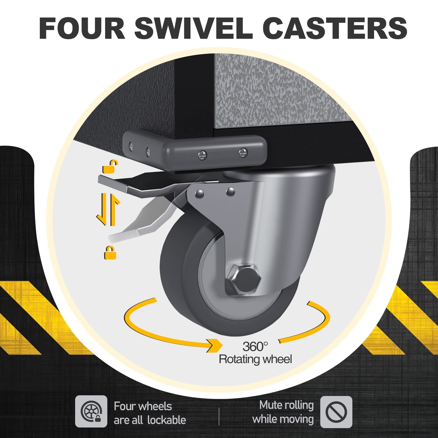 - 【Garage&Home&Office Metal Storage Cabinet】Metal storage cabinet has 4 rolling casters,you can move them around as needed and the casters work great on all the different surfaces of your garage.Rolls easily which is great,when moving to a new home.