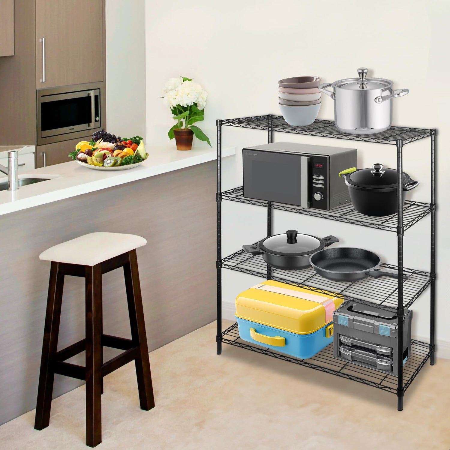 SUPER DEAL Black 4-Shelf Heavy Duty Storage Wire Shelving Unit for Restaurant Garage Pantry Kitchen Garage Rack (36L x 14W x 54H)