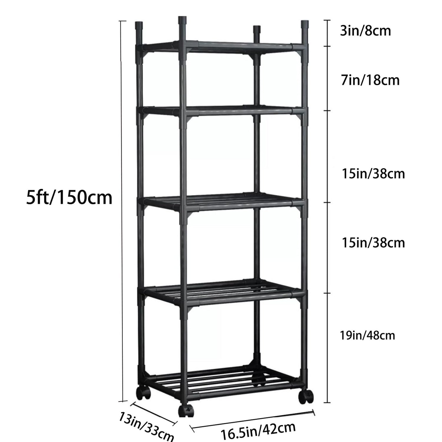 Susuzi 6-Tier Storage Shelves β 66" Tall Metal Shelving Unit with Wheels, 150lb Capacity β Compact 16.5" W x 13" D for Garage, Kitchen & Office (Black) (5-Tier)
