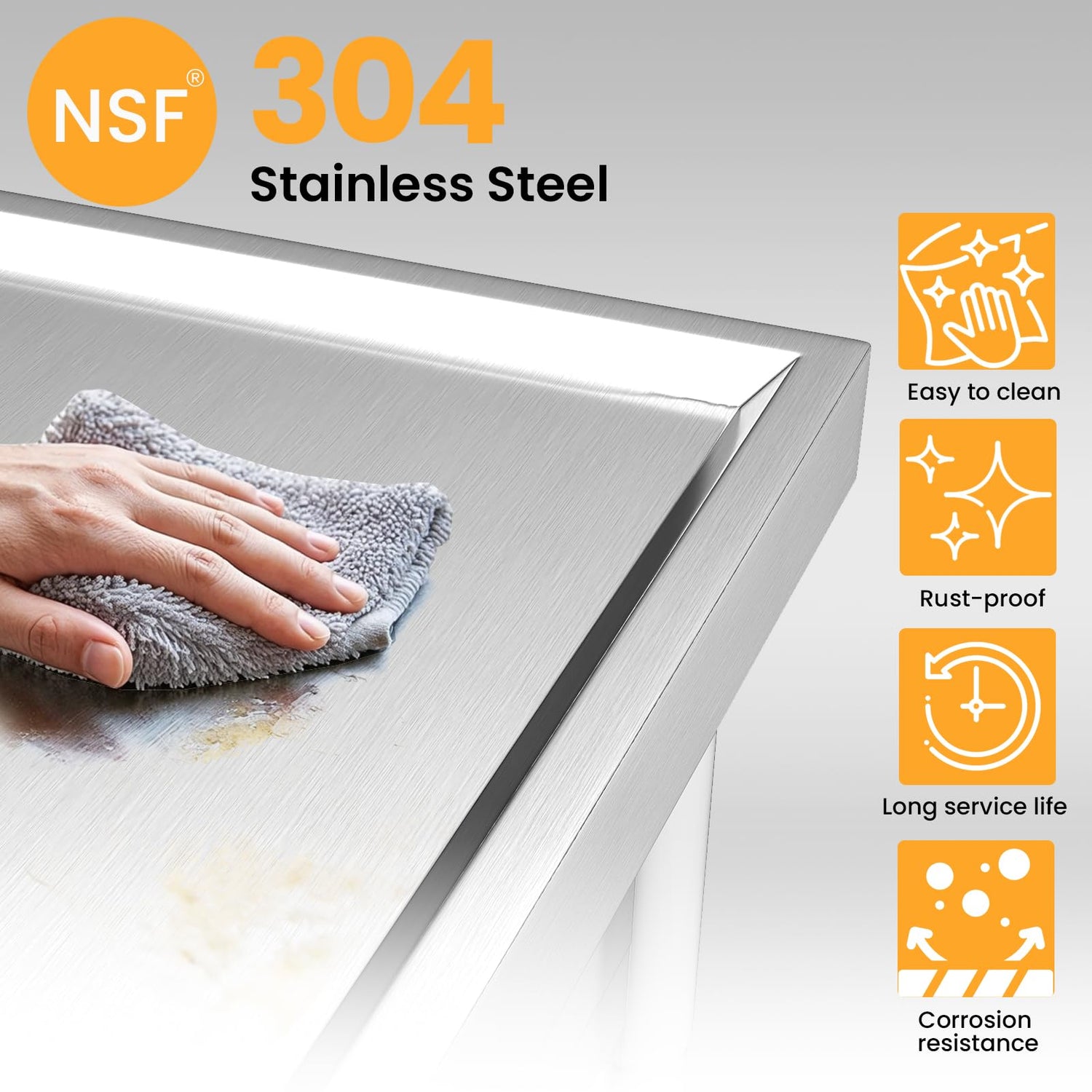 • [STAINLESS STEEL UTILITY SINK]: Crafted from premium 304 stainless steel, this freestanding sink is built to last, offering excellent resistance to rust, scratches, and wear. Its polished surface enhances both durability and aesthetics, while its easy-to-clean design simplifies daily maintenance.​