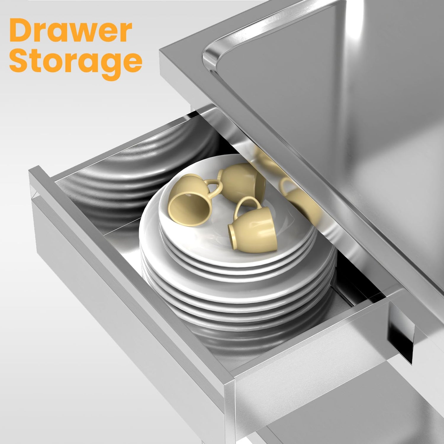 • [LARGE CAPACITY UTILITY SINK SET]: With a 16.1'' x 13.8'' x 7.1'' inner bowl and overall dimensions of 39.5"W x 63"H x 19.7"D, this sink provides ample space. It features a built-in drawer, a bottom shelf for storage, and an upper shelf for easy access, maximizing organization. Adjustable-height legs enhance versatility, making it ideal for backyard or garden grilling.