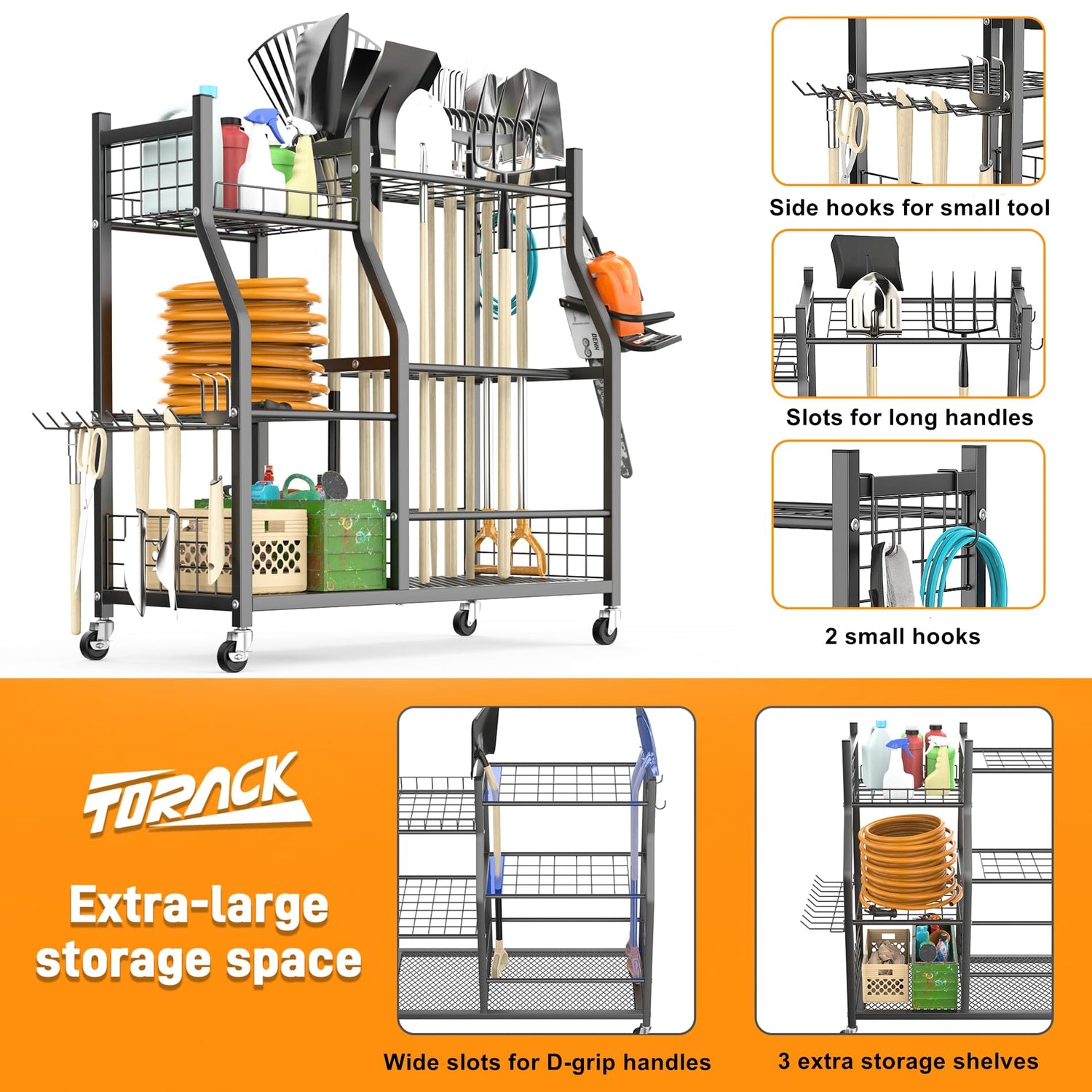 TORACK Garden Tool Organizer with Wheels, Rakes Shovels Yard Tools Stand for Garage, Shed, Garden, Indoor/Outdoor Long-Handled Tools Cart