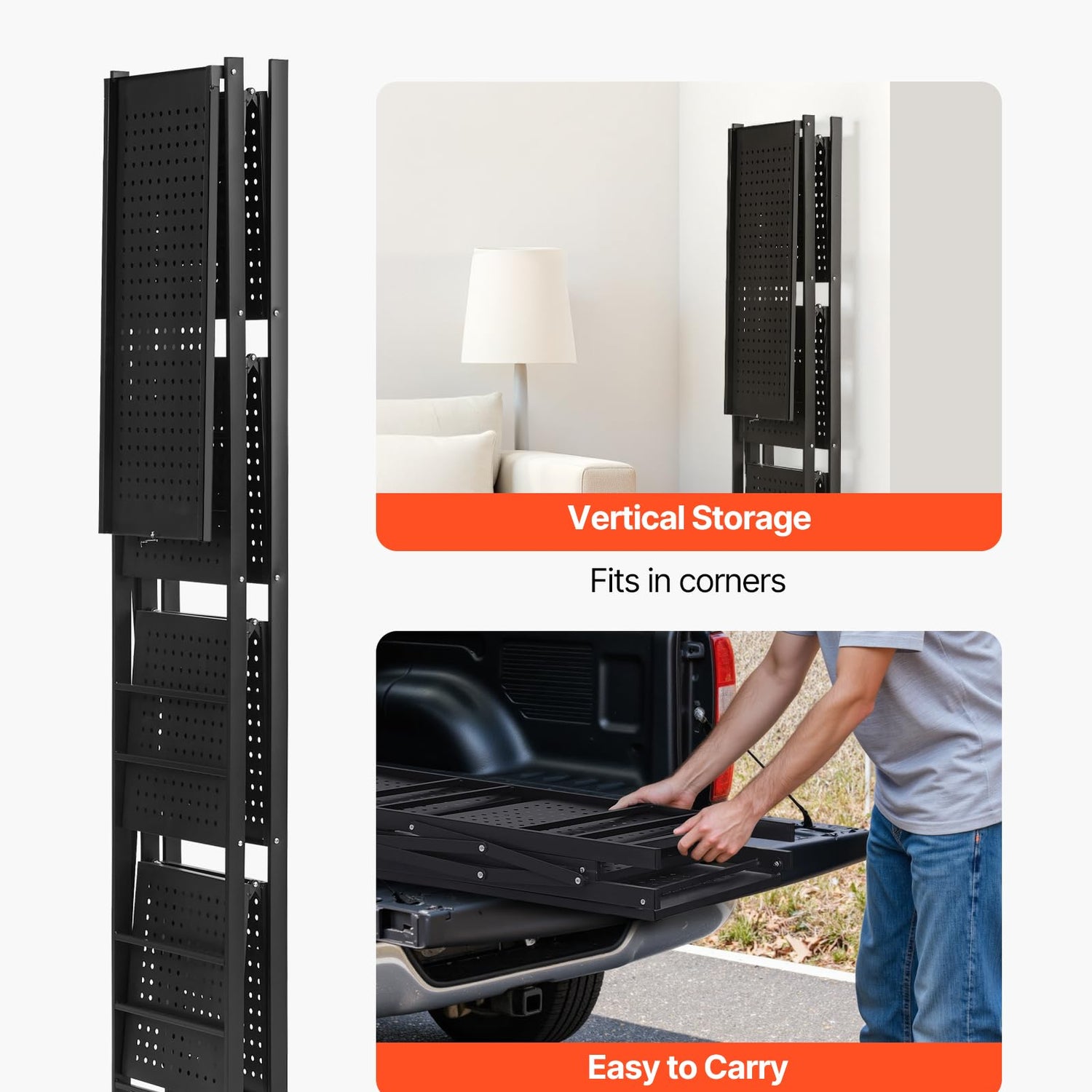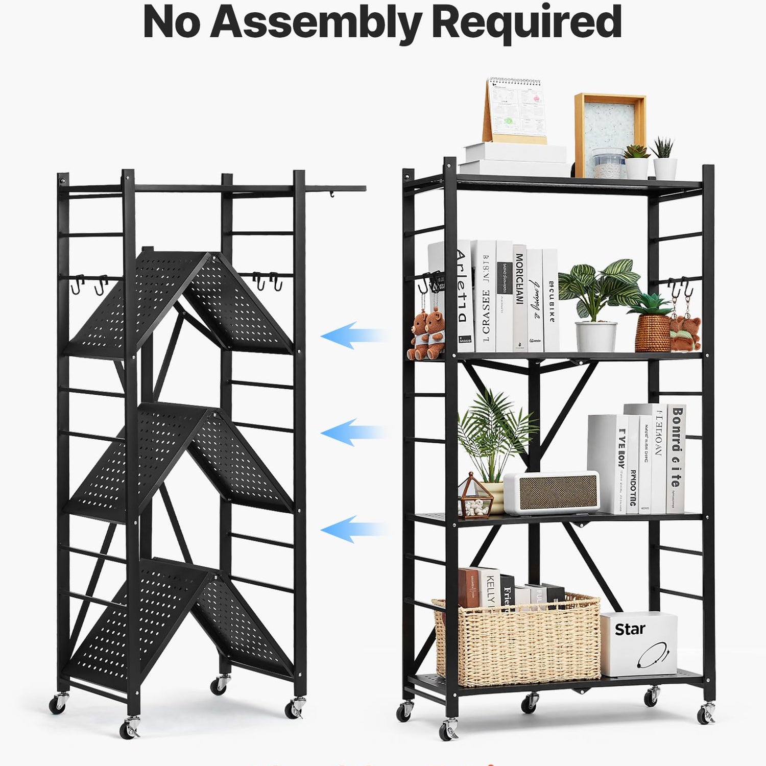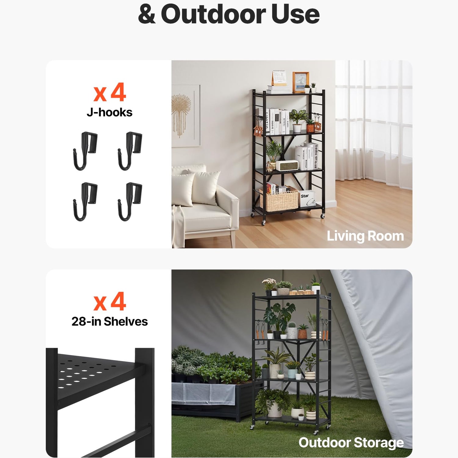 - Space-saving Foldable: When folded, the foldable storage shelf is only 4.3 inches thick, taking up minimal space. Ideal for small homes or tight spots, it also fits in your car trunk for outdoor use as a temporary shelf.