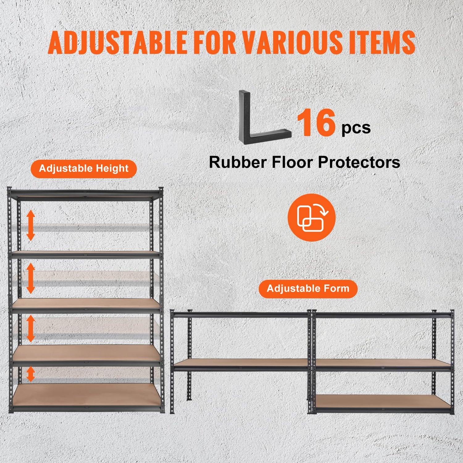 VEVOR Storage Shelves, 5-Tier Adjustable Storage Shelving Unit, 48" L x 24" W x 72" H Heavy Duty Garage Storage Shelves, Metal Shelves for Kitchen Pantry Basement Bathroom Laundry 2 Pack