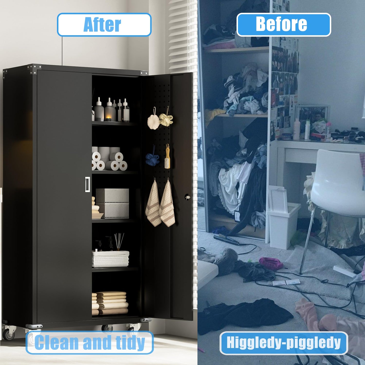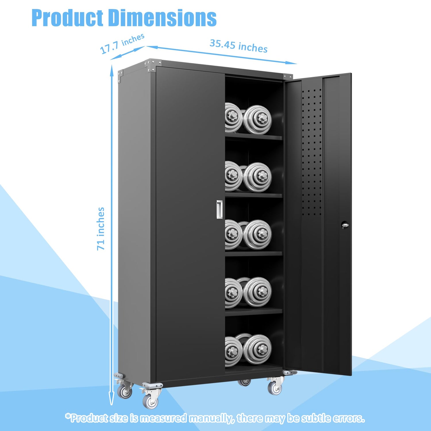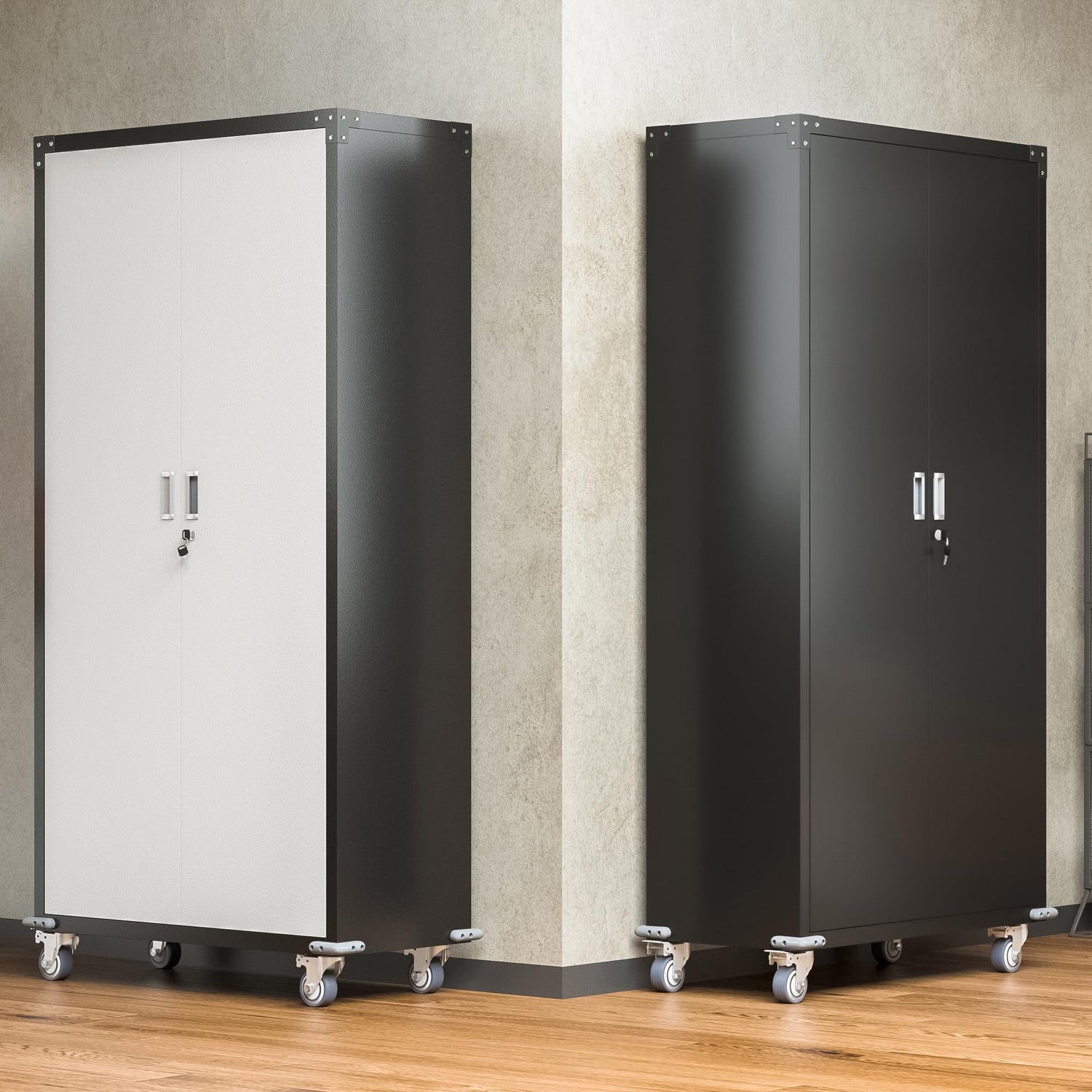 Waqiv 71''H Lockable Metal Garage Storage Cabinet on Wheels, Rolling Metal Storage Cabinet with 4 Adjustable Shelves, Rolling Tool Cabinet for Garage, Basement, Warehouse, Assembly Required