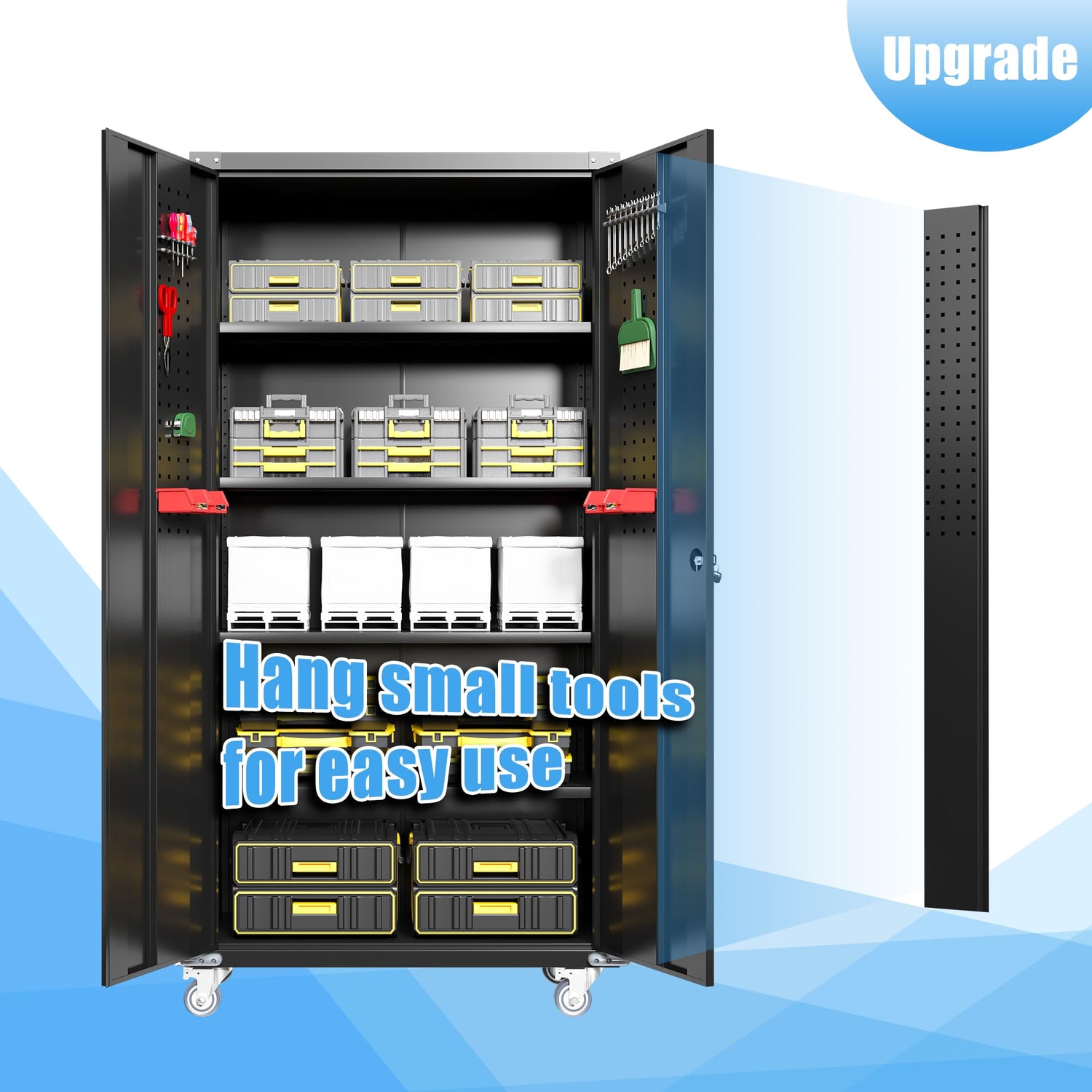 • 【Door with 2 Pegboard】An upgraded rolling metal tool storage cabinet on wheels with 2 pegboards on the inside of the door. You can hang some tools in the cabinet, such as gardening scissors, cleaning rags, screwdrivers, etc