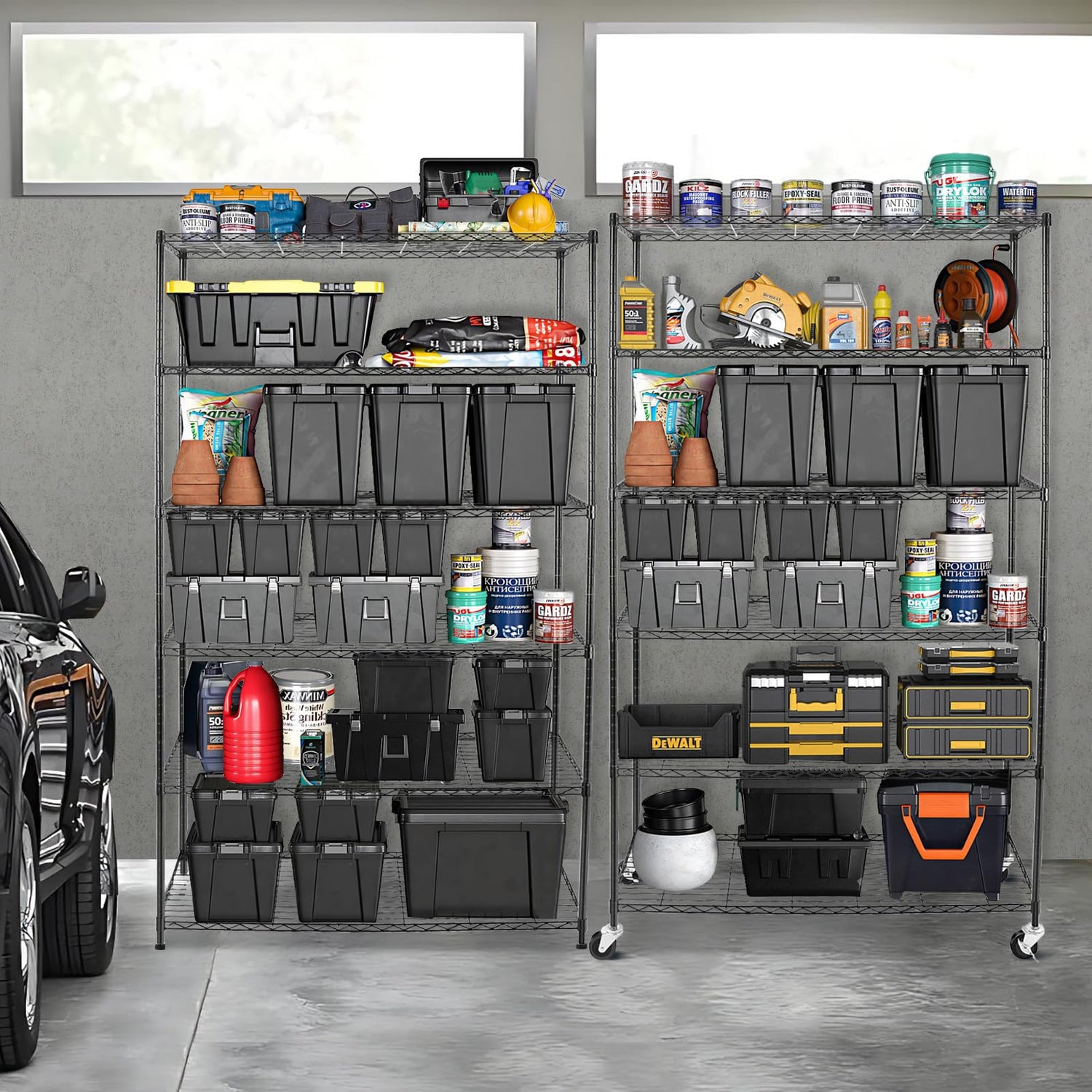 - 【Multipurpose Wire Shelving Unit & 10 Years Aftersale Service】This 6 Tier wire rack shelving black powder-coating finish naturally matches most colors and design schemes, great as garage shelving,kitchen shelves,laundry shelving,pantry shelf,warehouse shelves and so on. We provide 10 Years Aftersale Service, Just feel free to bring the rolling shelves home.