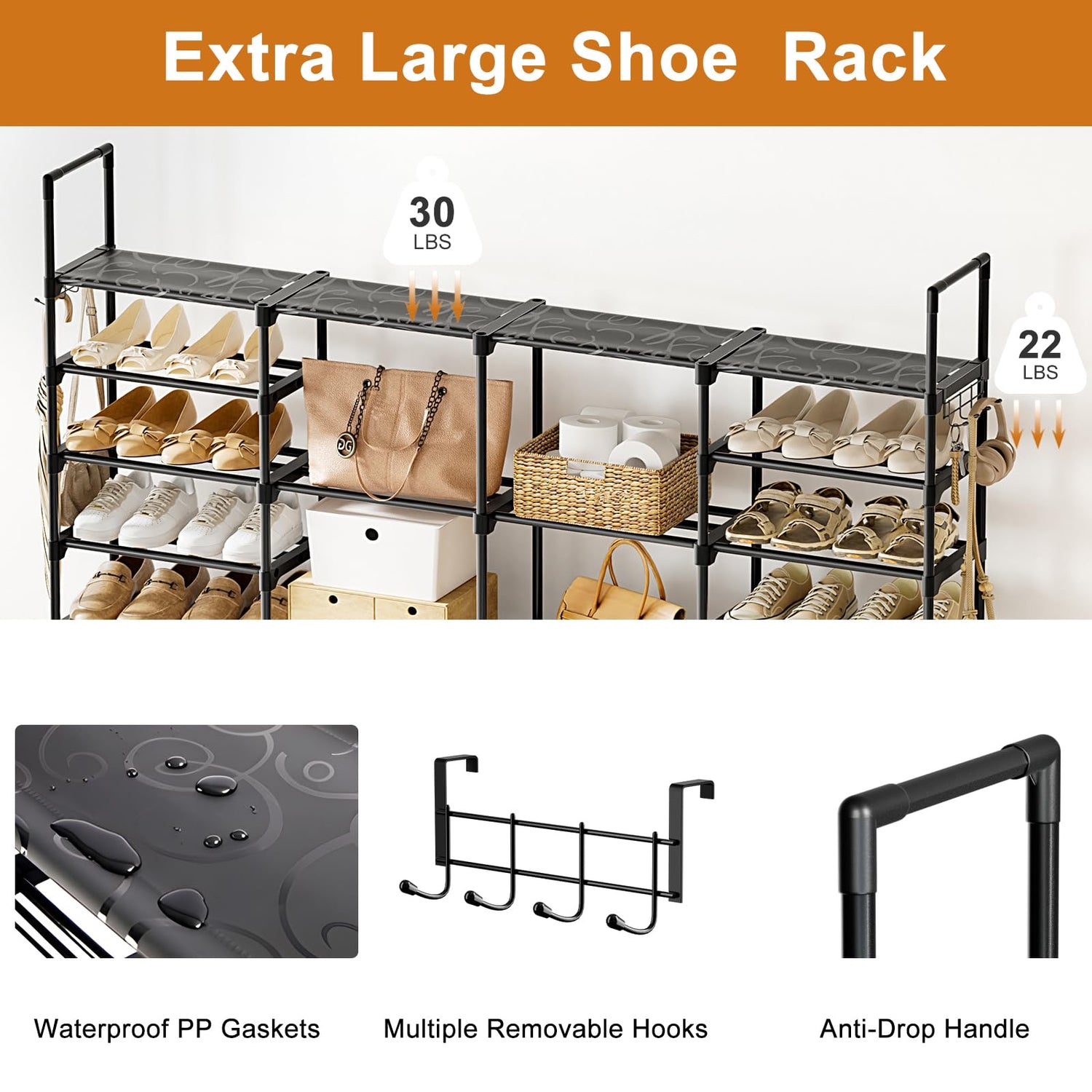 Details: 4 Row 10 Tiers Extra Large Shoe Rack 72-80 Pairs Big Tall Metal Shoe Shelf, Heavy Duty Shoe Rack Organizer for Closet Entryway, Boot Rack Storage Stackable Shoe Rack for Garage Black