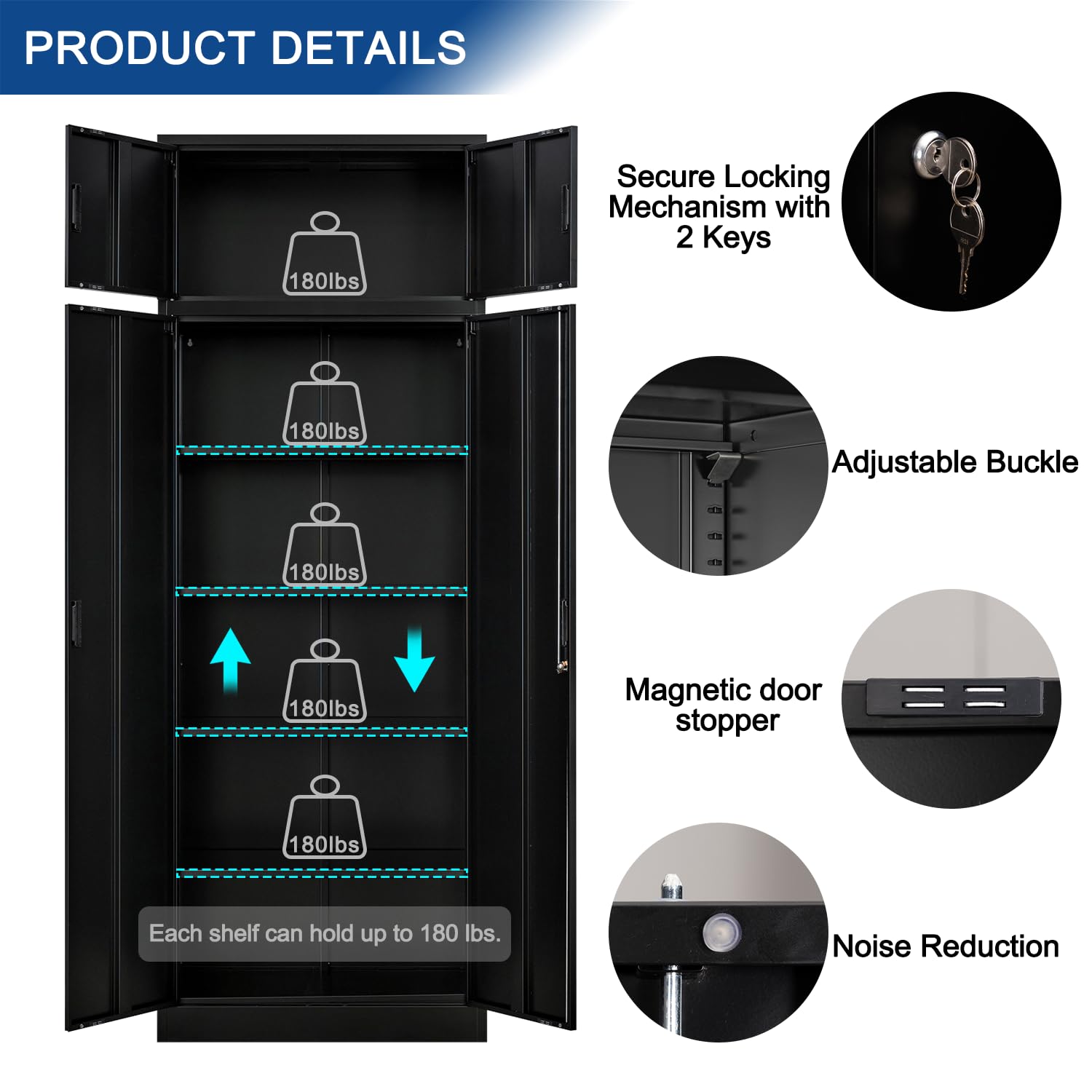 - 【Multipurpose】 The metal storage cabinet comes with 4 adjustable shelf to fit the size of your items, and the shelf can hold up to 150 pounds. This steel storage cabinet has an additional storage space compared to ordinary filing cabinets, so you can store a large amount of work documents & household supplies.
