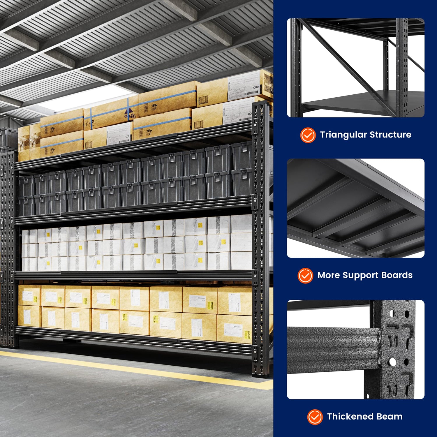 - 【Multi Scene Storage Solution】:From garage storage shelves to retail backrooms, perfect for warehouse storage, supermarket storage, home storage, shelving units and storage systems eliminate clutter.