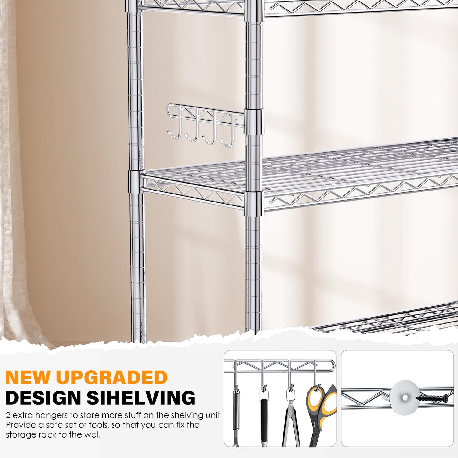 - 【Rust Proof & Water Resistant】Stainless steel shelves Constructed from carbon steel ,Chrome Plated, scratch-resistant , wear-resistant surface,different from plastic material, in the warehouse, kitchen, outdoor, don't worry about the material aging, fire and rust.