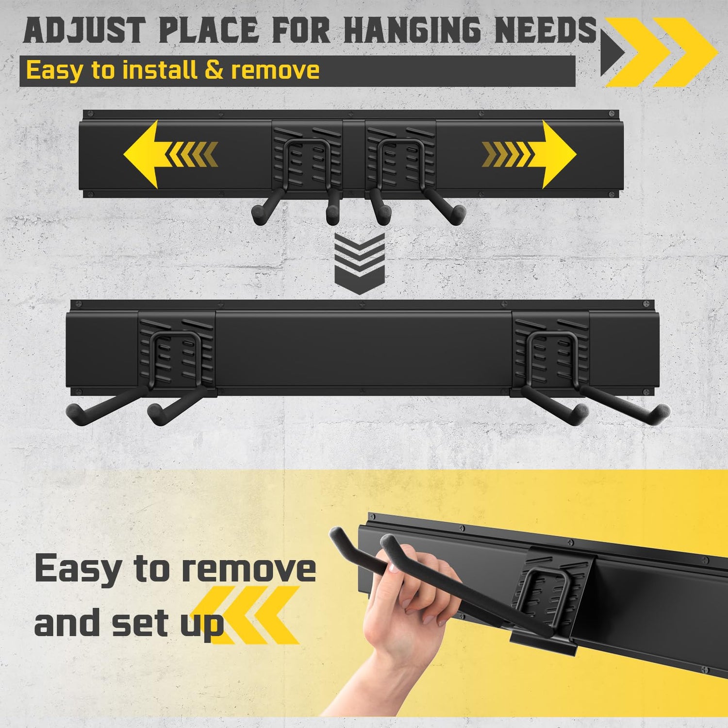 - Heavy Duty and Sturdy: The garage tool organizer is made of sturdy steel and bearing 720 pounds. Rubber hooks can prevent scratches and tools,shovels from sliping, make tools stable and ensure safe use