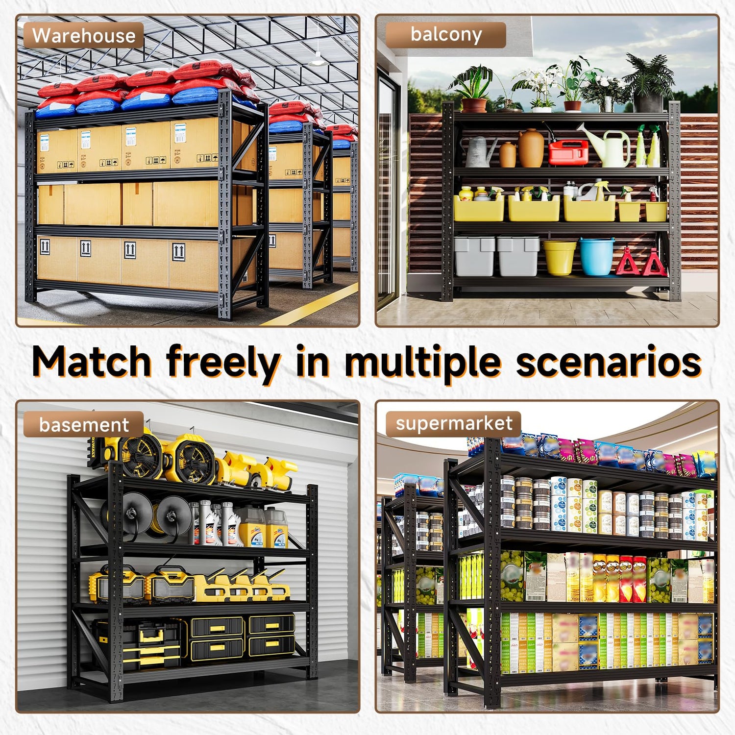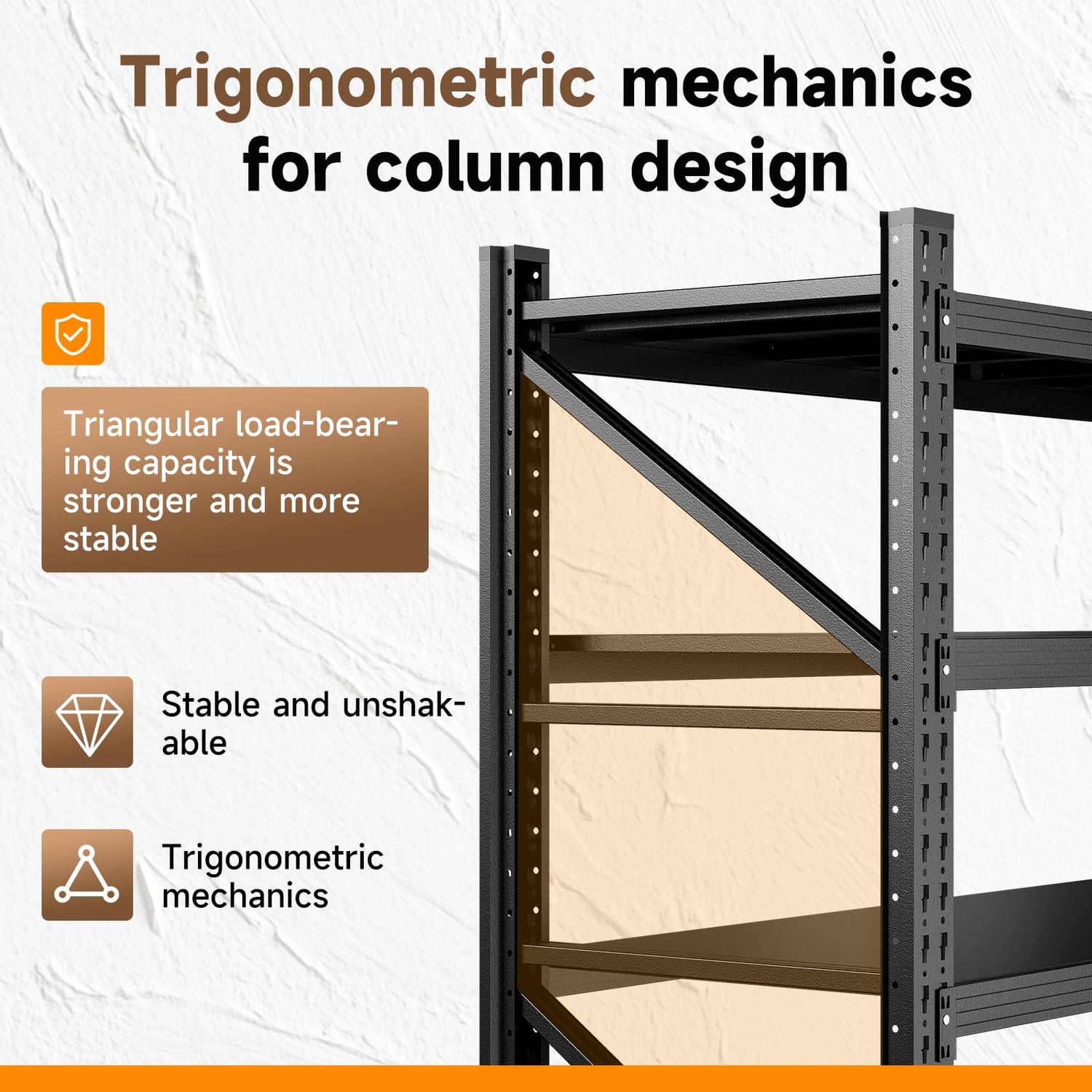 - 【Security and Stability】These heavy-duty garage shelving units feature triangular side braces and secure locking pins to prevent wobbling or collapsing, even under heavy loads. The rigid steel frame provides unmatched stability, ensuring your storage shelves heavy duty stay firmly in place.