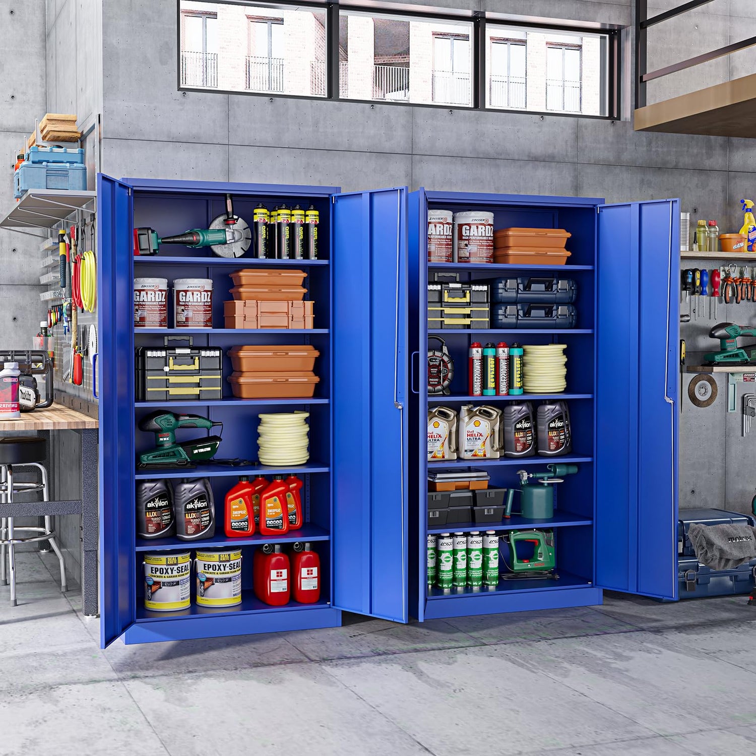 ZAOUS Metal Storage Cabinet with Lock,71'' Garage Storage Cabinet with 5 Adjustable Shelves, Tall Tool Cabinets for Garage, Home, Office, Gym, School, Blue