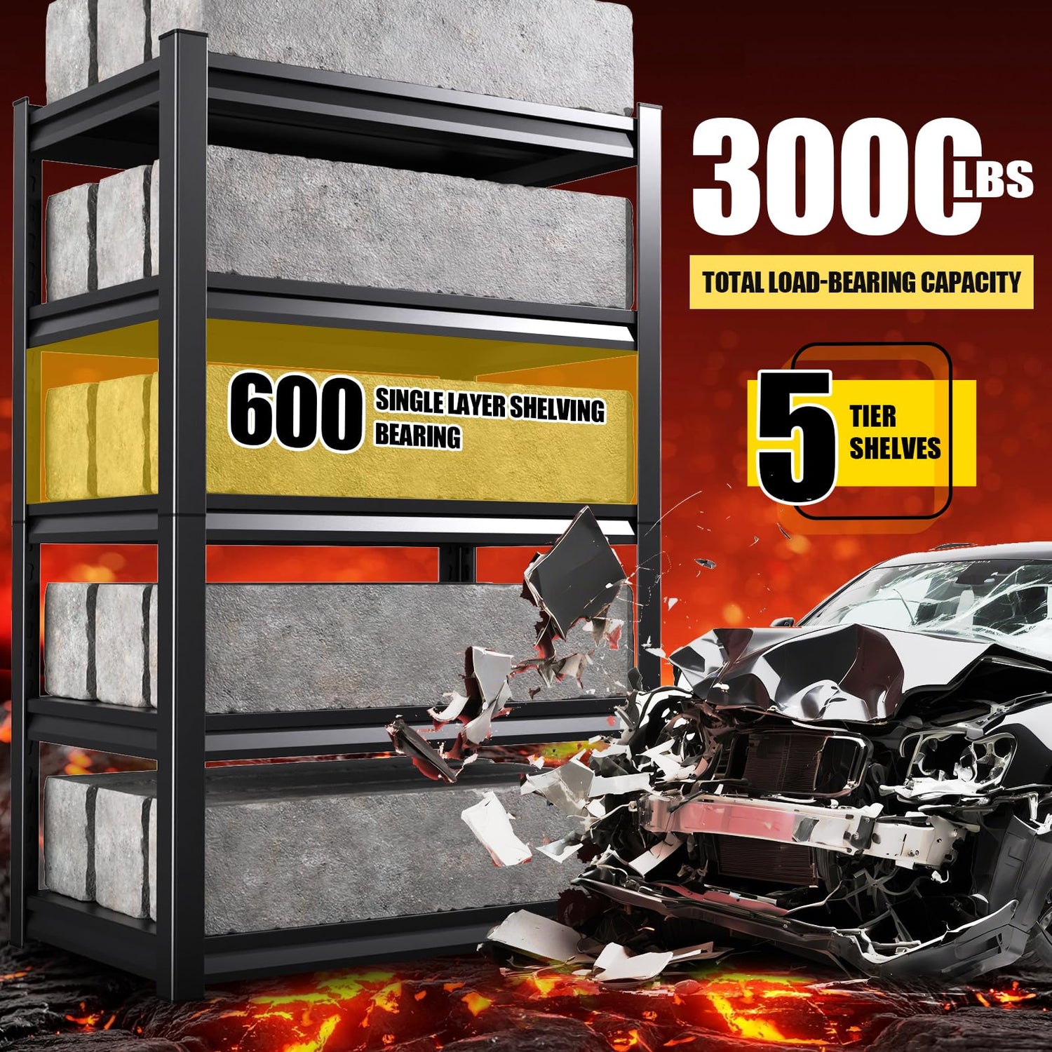 ZIWJHK 72''H*59''W Garage Shelving 3000LBS Adjustable Storage Shelves,5 Tier Metal Steel Heavy Duty Shelving Unit, Industrial Utility Rack Shelf, Storage Organize for Garage, Basement,Black