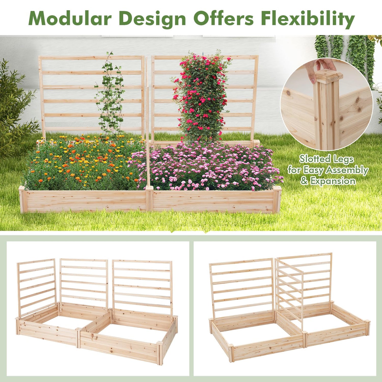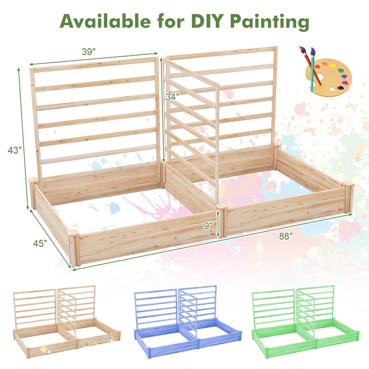 HAPPYGRILL Raised Garden Bed with 3 Trellises, Outdoor Wood Raised Bed w/ 2 Planter Boxes for Flowers, Vegetables, Fruits Climbing Vines, Elevated Garden Box for Yard Patio, 88" L x 45" W x 43" H