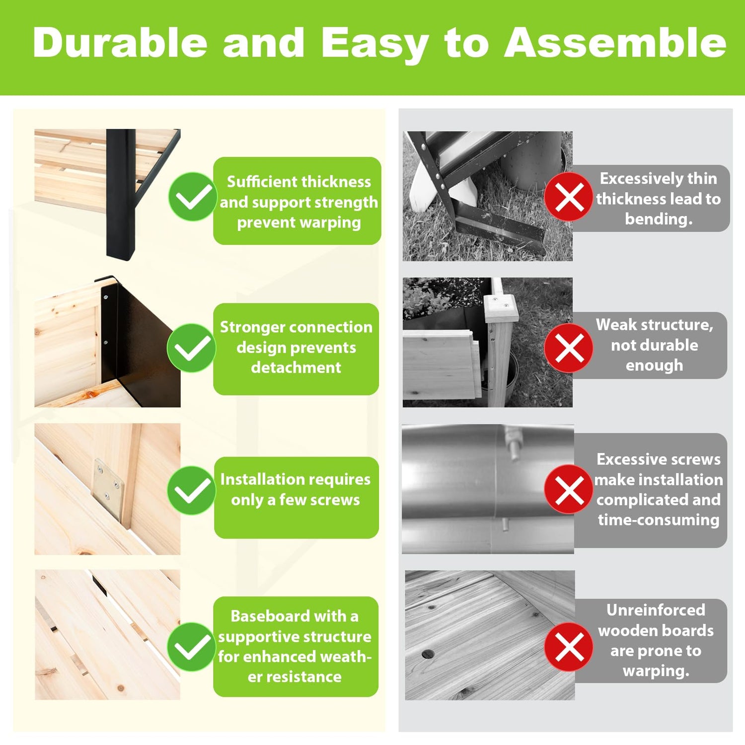 - Easy to Assemble: This raised garden bed includes screws, a screwdriver, tacks, and a fabric liner for quick and hassle-free installation. It lets you set up your raised garden bed outdoors with ease, providing a seamless gardening experience