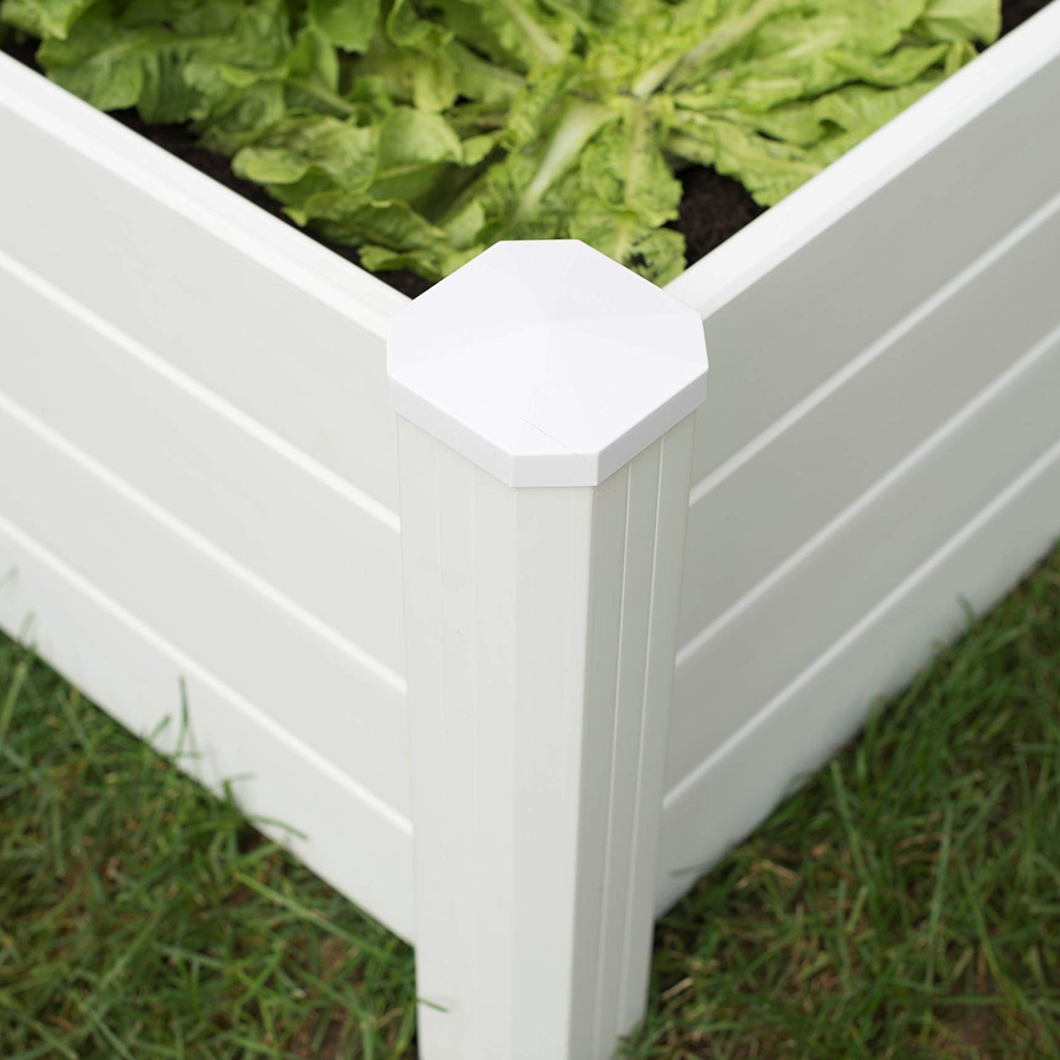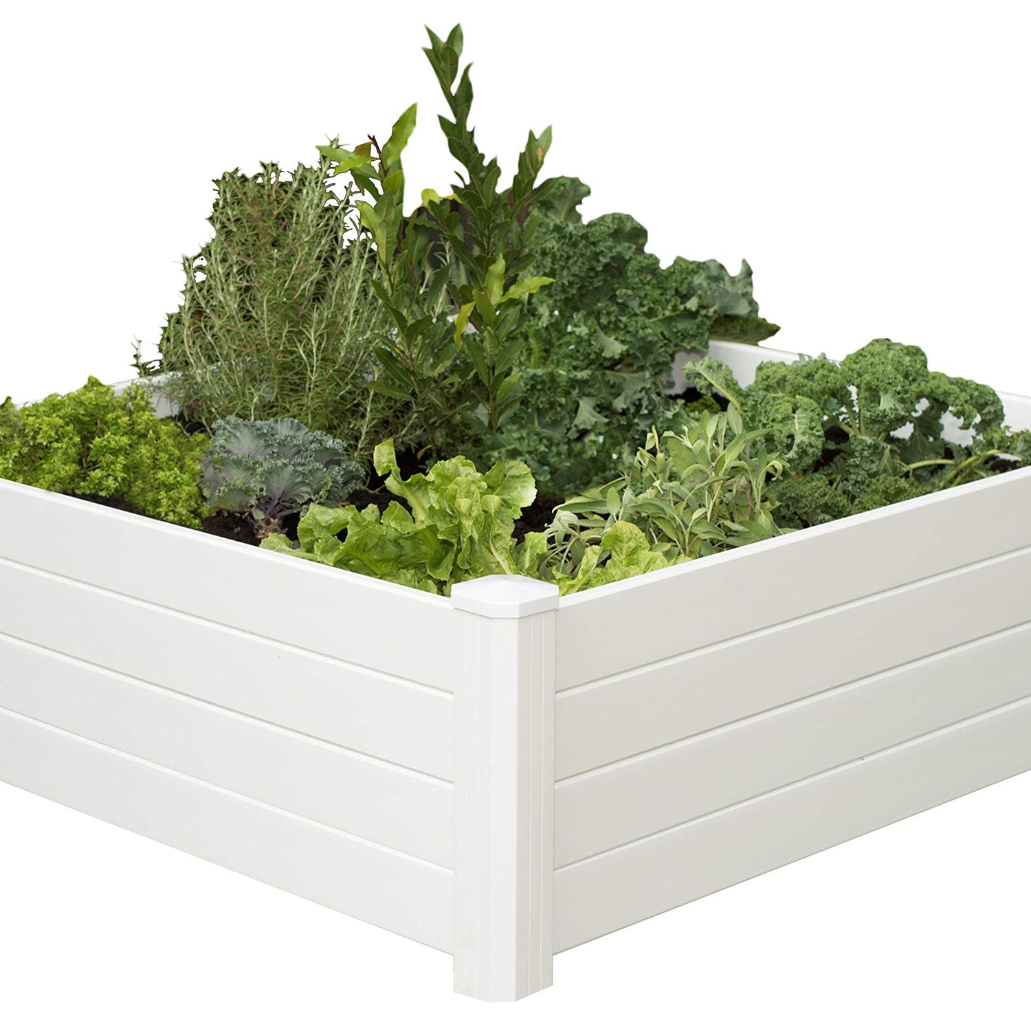 Details: Growing plants and other greenery is a breeze with the NuVue Products 26001 Premium Raised Garden Bed. This elevated planter box makes it easy to add a beautiful, luscious garden to any patio, backyard, front porch, sunroom, or other outdoor space of your home. The BPA-free garden bed is certified safe for growing edible plants, making it ideal for growing herbs, salad greens, berries, vegetables, succulents, flowers, and much more. Constructed from heavy-duty, UV-resistant white polymer with a woodgrain panel texture, this maintenance-free garden planter is as durable as it is attractive and will not rust, rot, or mold. Set-up or take-down is a breeze with NuVue’s unique Quick-Connect system which allows for a quick and easy assembly with no tools required. Measuring 48” L x 48” W x 15” H, this outdoor plant box offers ample space to grow plants, vegetables, herbs, flowers, or fruits, and the tall wall height reduces the amount of bending and back strain required to maintain your garden's beauty.