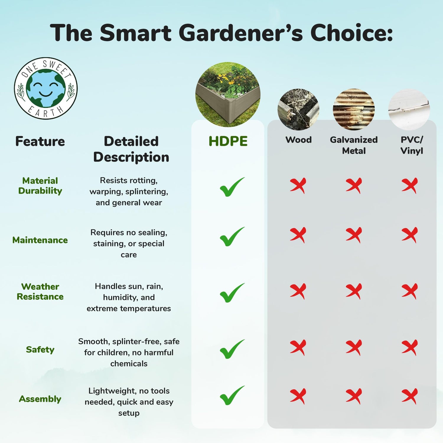 - SAFE, ECO-FRIENDLY GARDENING: Made from non-toxic, BPA-free plastic, this raised bed is 100% recyclable, offering a sustainable option for growing your herbs, vegetables, and flowers. Enjoy peace of mind knowing your garden is safe for both plants and the planet.