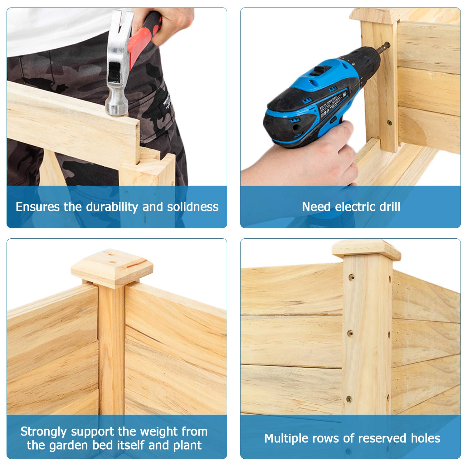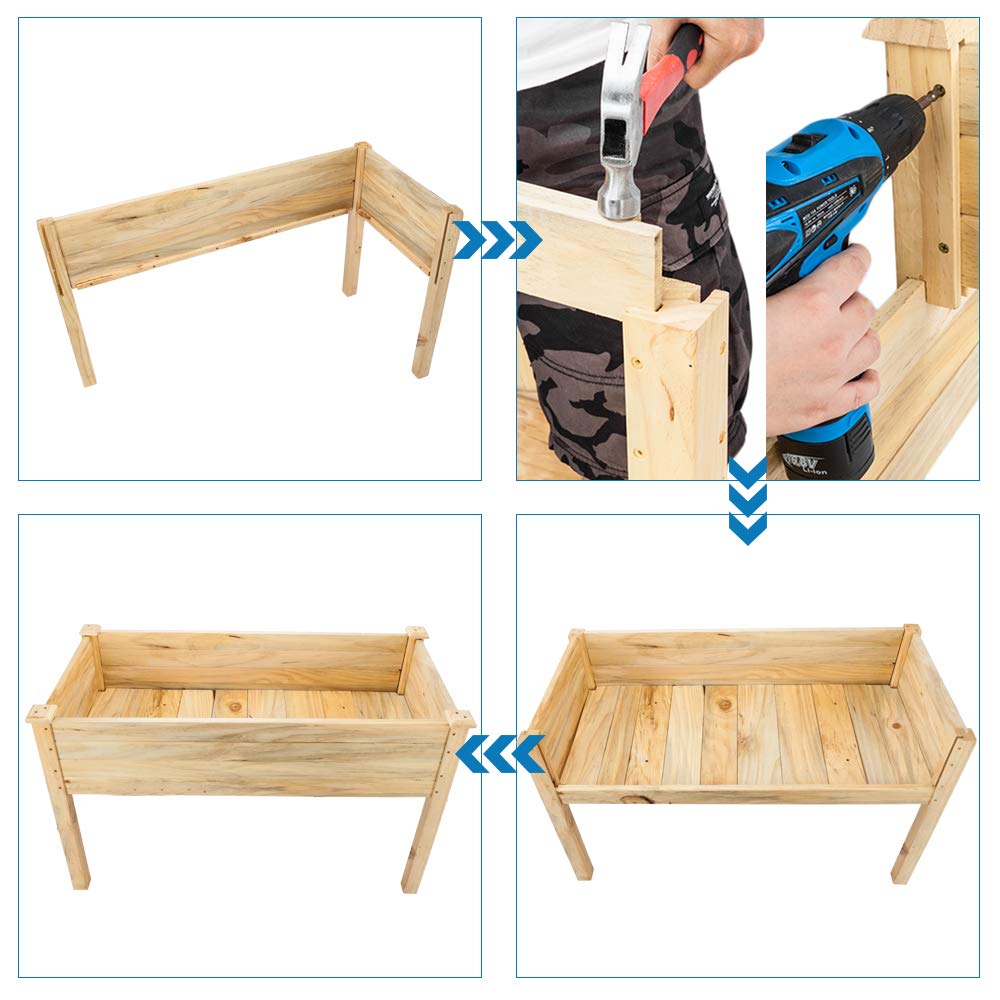 - 【Upgraded & New Design】 Raised garden beds for vegetables new design for load bearing 250lbs, very tight between wood and wood ensures the durability and solidness, and a little more screws on this raised garden planter. So you need a hammer and an electric drill would be better for raised garden planter box with legs, it's not quick assembly, but will be long lasting.