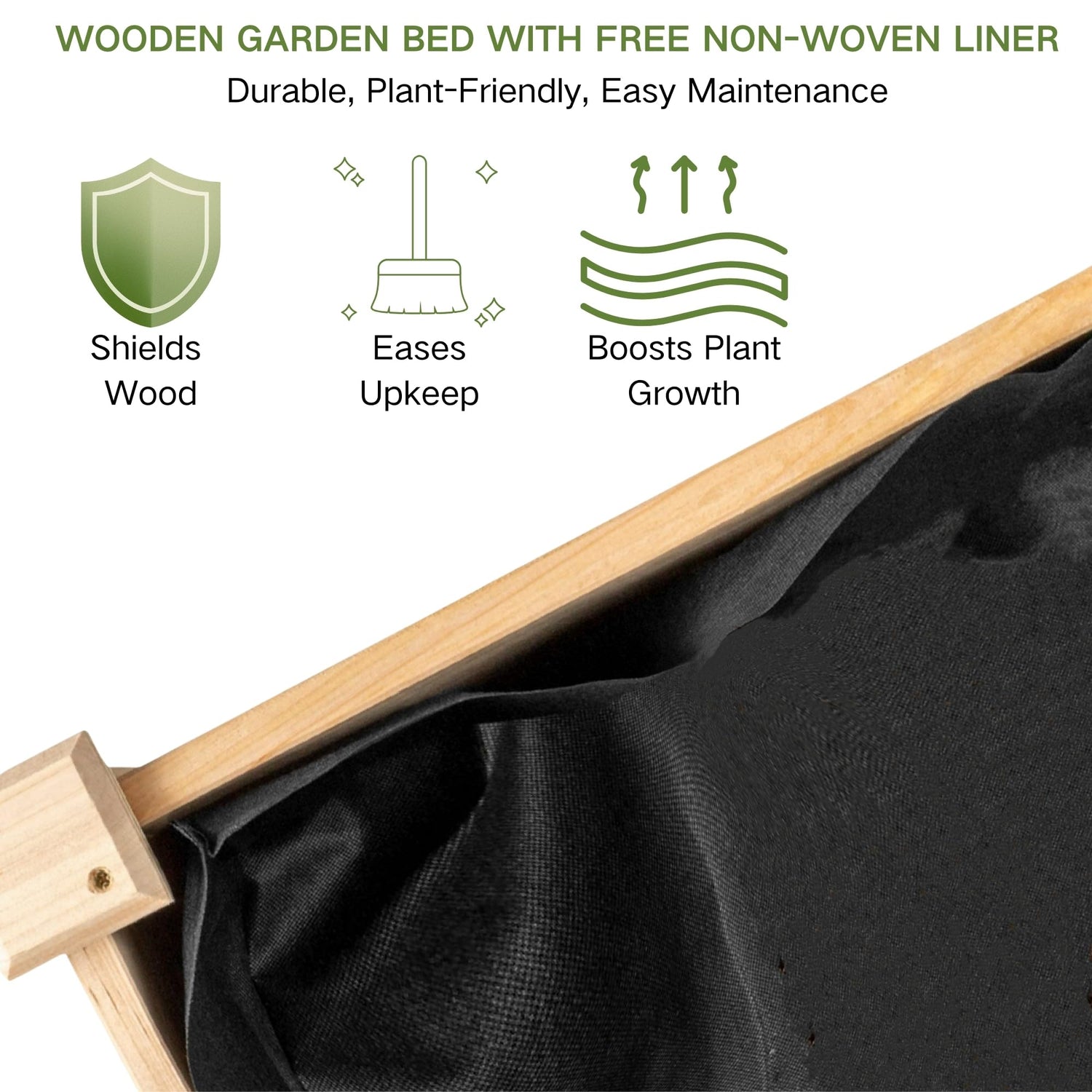 - Complete with Protective Non-Woven Liner:Includes a FREE premium non-woven fabric liner.This liner sits inside the wooden frame to contain soil efficiently, improve drainage, prevent soil leakage, and protect the wood from moisture, significantly extending the lifespan of your garden bed.
