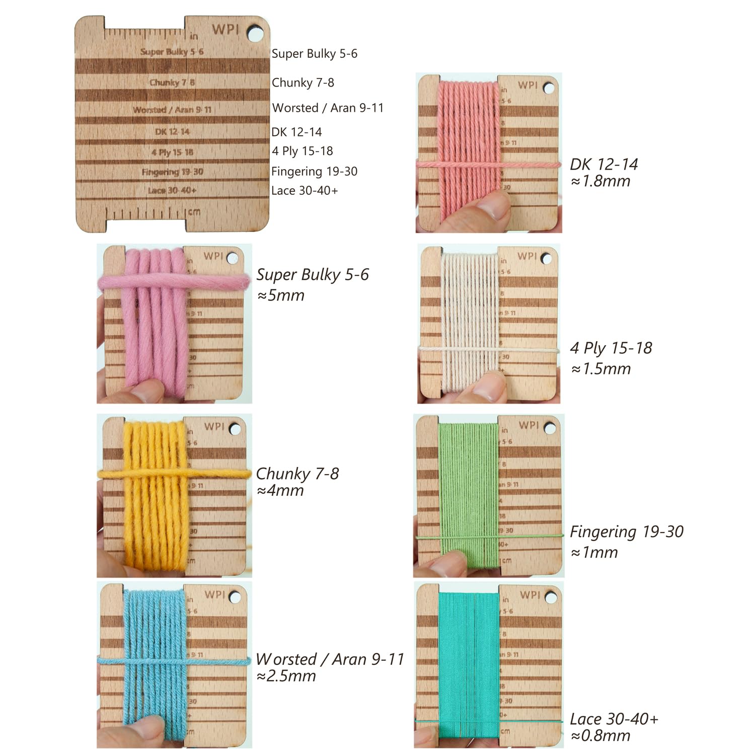• WPI Specification: Quickly determine the WPI rating by counting the number of yarn wraps per inch or laying the yarn along the black strip until you find a match.