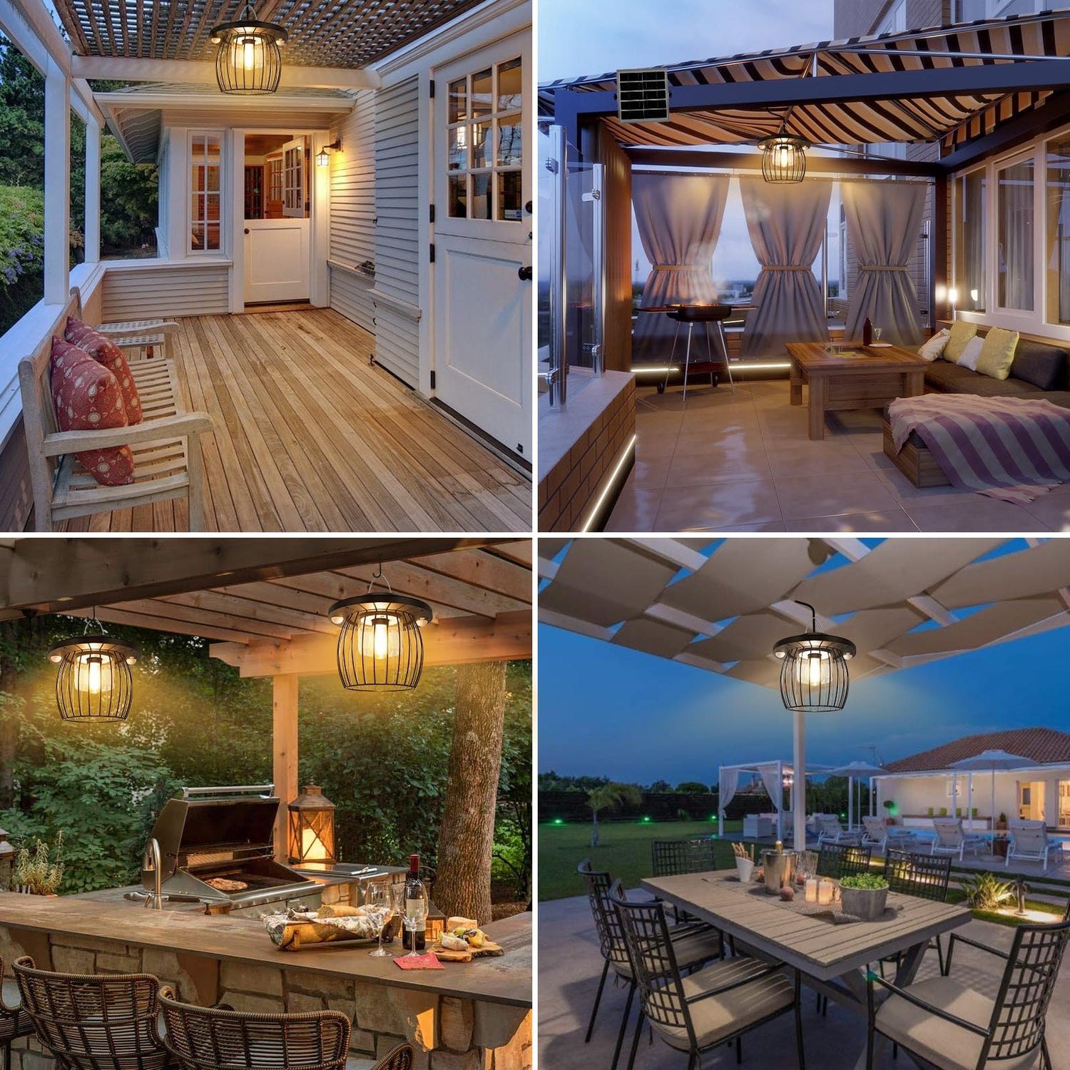 • Split Design Fit for Outdoor Indoor: This solar pendant lights are separate from the solar panels, you can place the solar panels in a sunny place and connect them to the lights with a 16.4 feet cable. This way, you can enjoy bright lighting from your solar security light even in dark indoor and outdoor off-grid cabins. You can hang it anywhere such as front door, gazebo, patio, garage, shed, porch, driveway, chicken coop, etc.