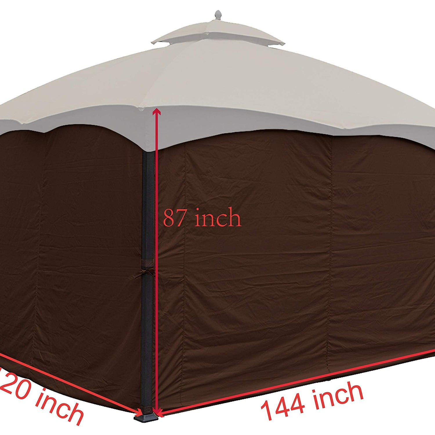 APEX GARDEN Four-Side Privacy Curtain Set for 10-Ft x 12-Ft Gazebo (Brown)