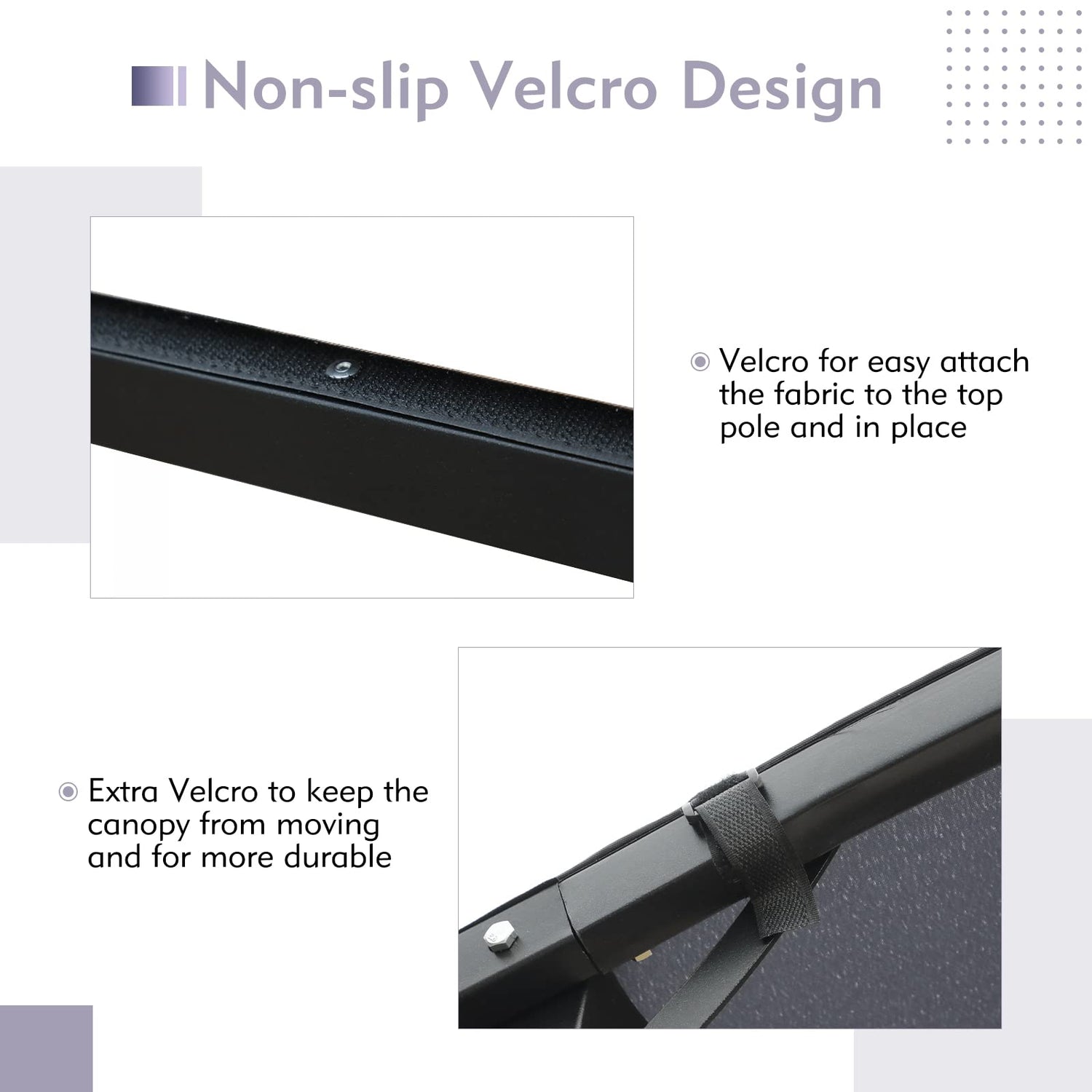 - Durable polyester top with waterproof painting inside with fading-, weather- resistance, easy to clean, the buckles fasten the gazebo top better to improve the water pooling problem