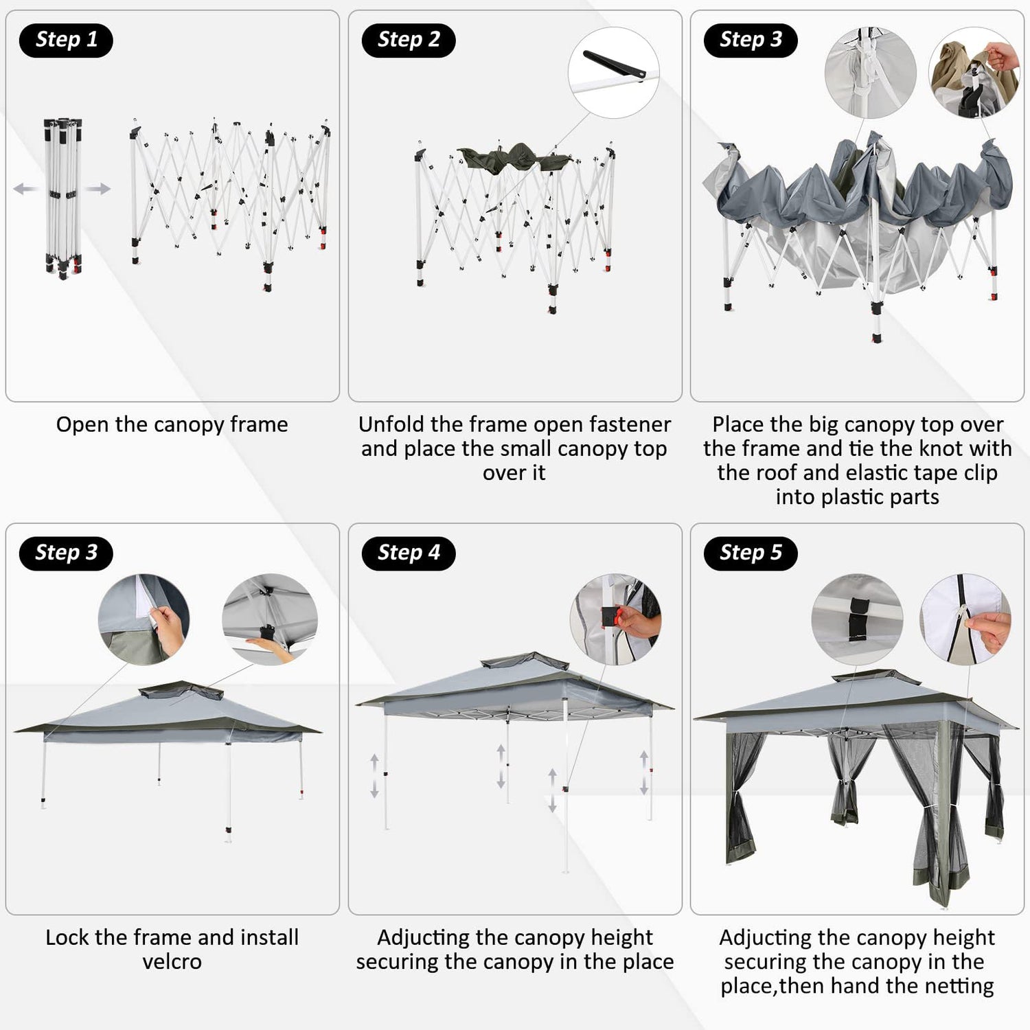 - 【Easy Up Frame & Upgraded Designs】Our outdoor gazebo canopy tent 10x10 is designed with pop up frame, which can be installed in minutes by one or two people. Thicken metal tubes and upgraded interior hooks make our screen canopy tent more wind-resistant and show more sturdy performances. With an additional carrying bag, you can easily bring our portable gazebo anywhere.