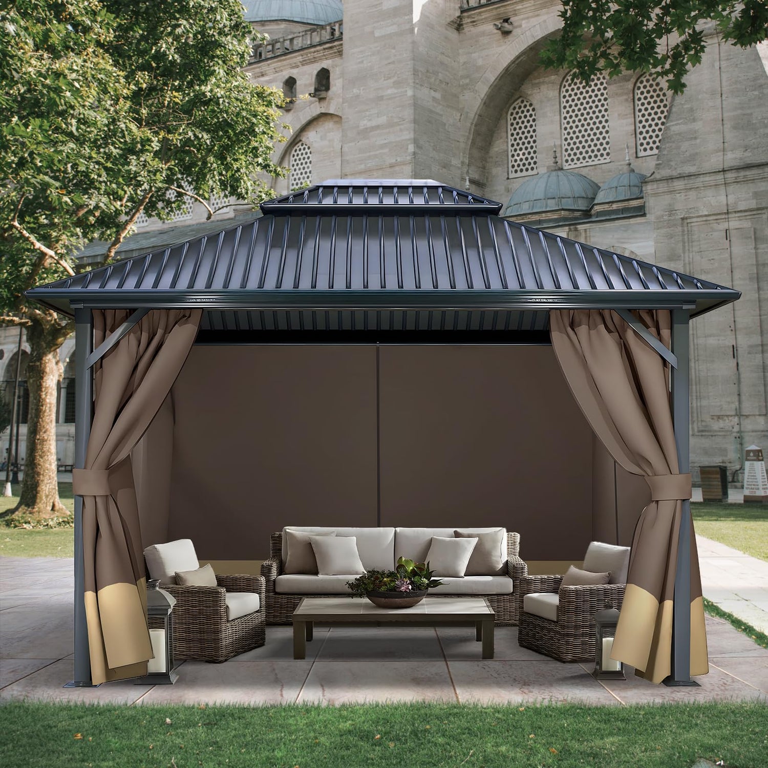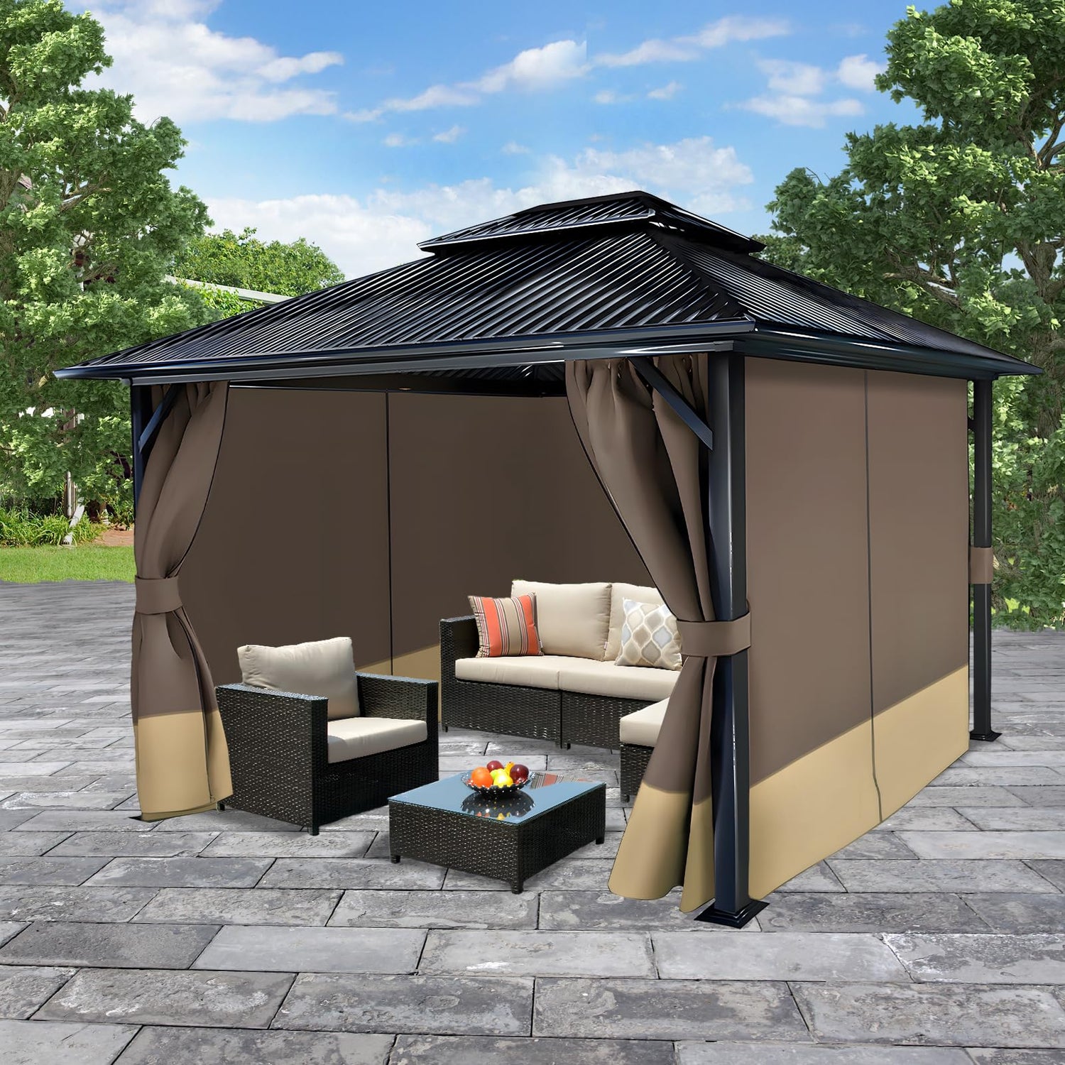 - UNIVERSAL DIMENSION: 4-panel universal sidewall gazebo curtains are designed to perfectly complement most 10'x10' 10'x12' 10'x13' 12'x12' 12'x14' 12'x16' gazebos. We kindly advise you to measure your gazebo before making a purchase