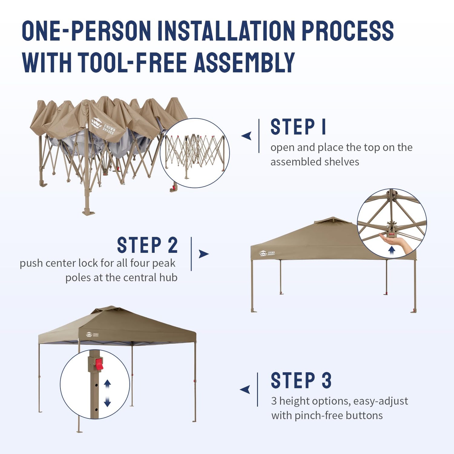 - Heavy-Duty Reinforced Frame - Features an 8-way ultra-stable central locking system (vs. standard 4-way), coupled with reinforced steel legs protected by corrosion-resistant bronze coating. The innovative single-push mechanism instantly locks all four legs in place, while soft, pinch-free buttons enable precise height adjustments. Designed for rapid setup, the product allows a single person to complete tool-free assembly within seconds.