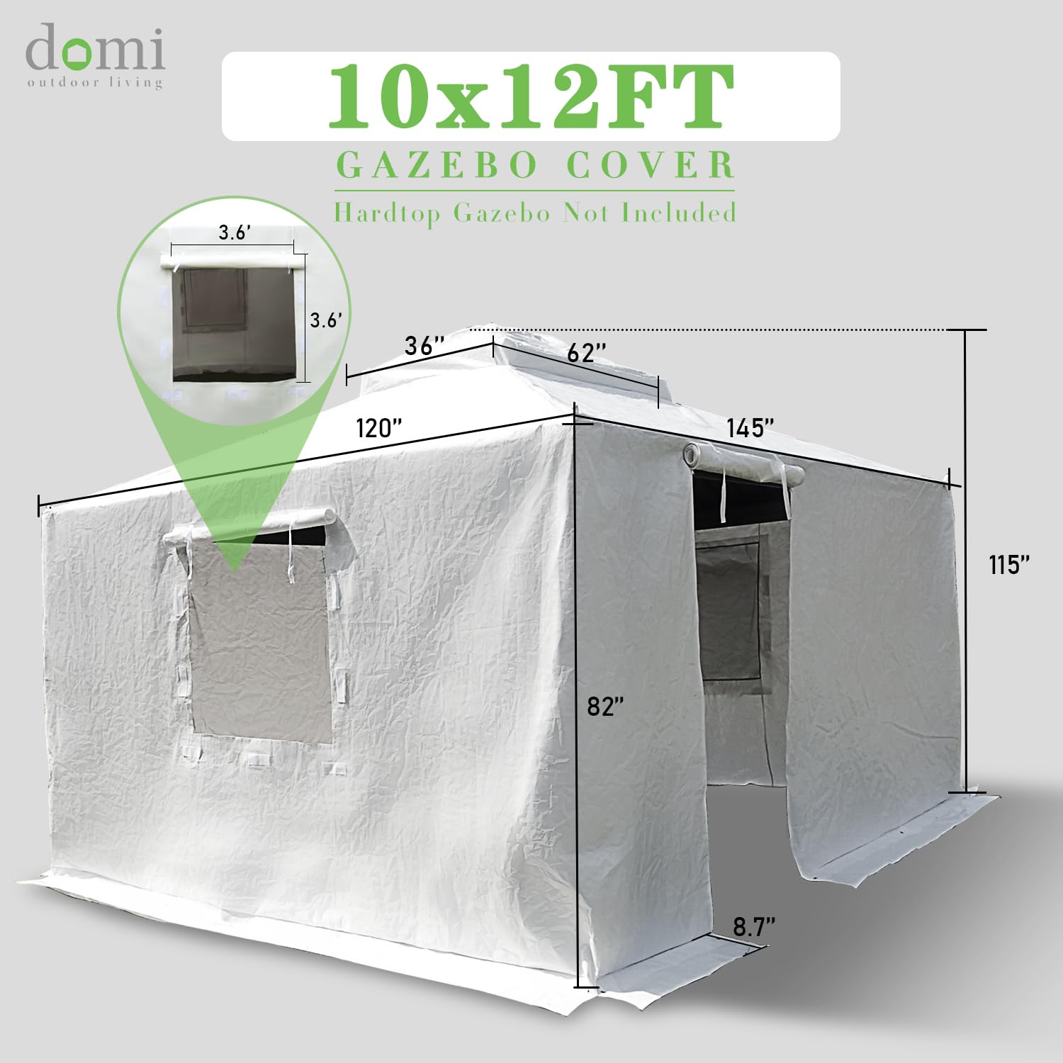 - Premium PE Material: The Domi Universal Winter Gazebo Cover is crafted from high-quality PE, offering superior water resistance and lasting durability. Its sleek, tailored fit complements various gazebo sizes, providing an elegant shield against harsh winter conditions.