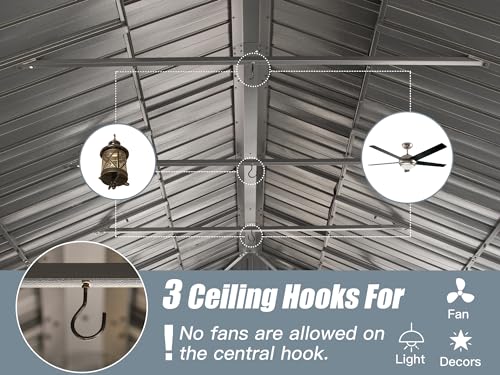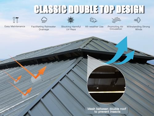 • ❤️Stability and Durability- The galvanized steel metal top and sturdy aluminum frame provide the metal gazebo with the ability to withstand heavy snowfall in winter and offer unbeatable stability in windy conditions.